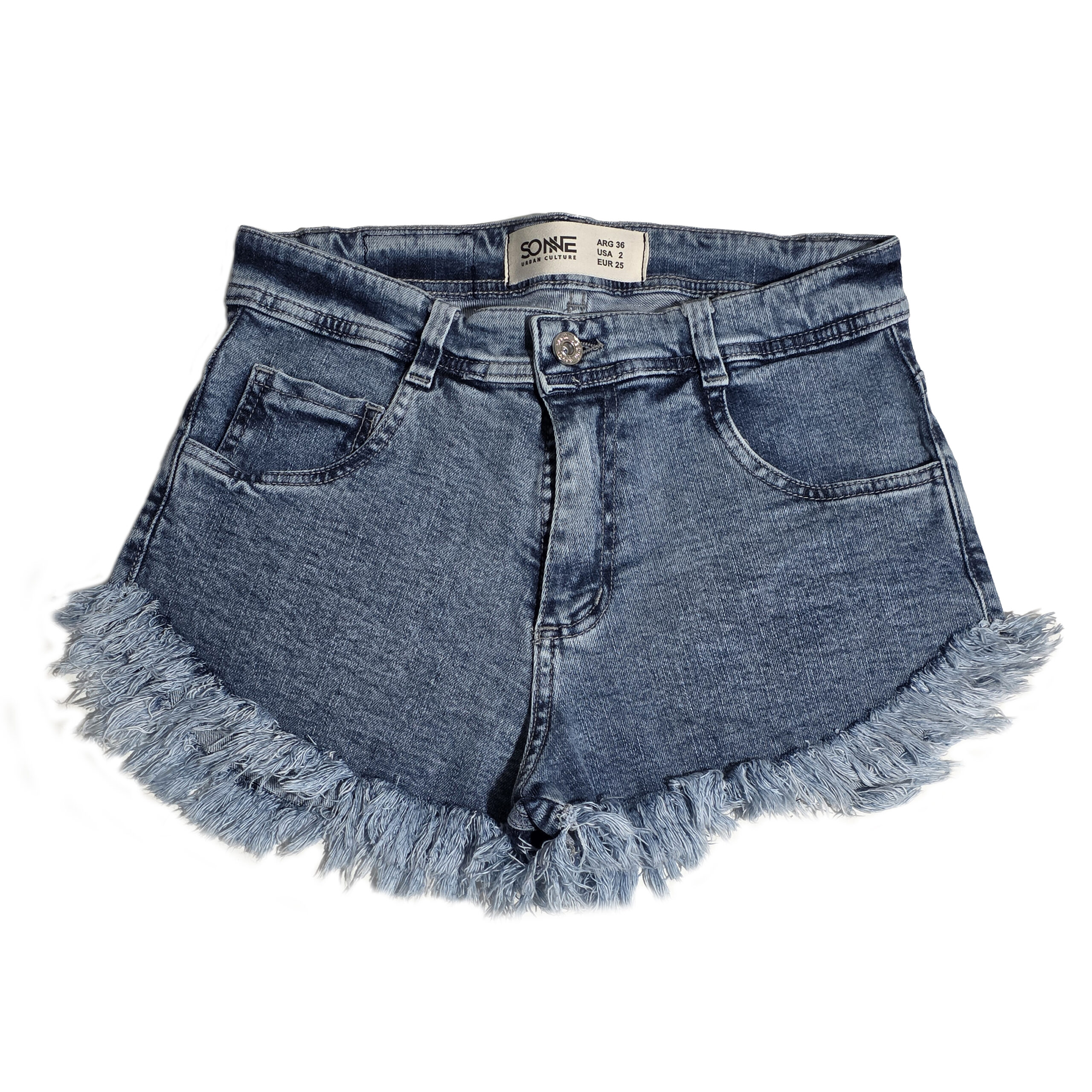 HEATHER | BERMUDA DE JEAN AZUL CON HILO DE ALGODON TIRO ALTO TALLES 36 AL 60 SONNE