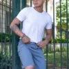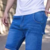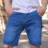 IBIZA I BERMUDA CARPINTERO DE JEAN ELASTIZADO AZUL LAVADO CON BIGOTES TALLE 38 AL 50 CRUZO