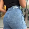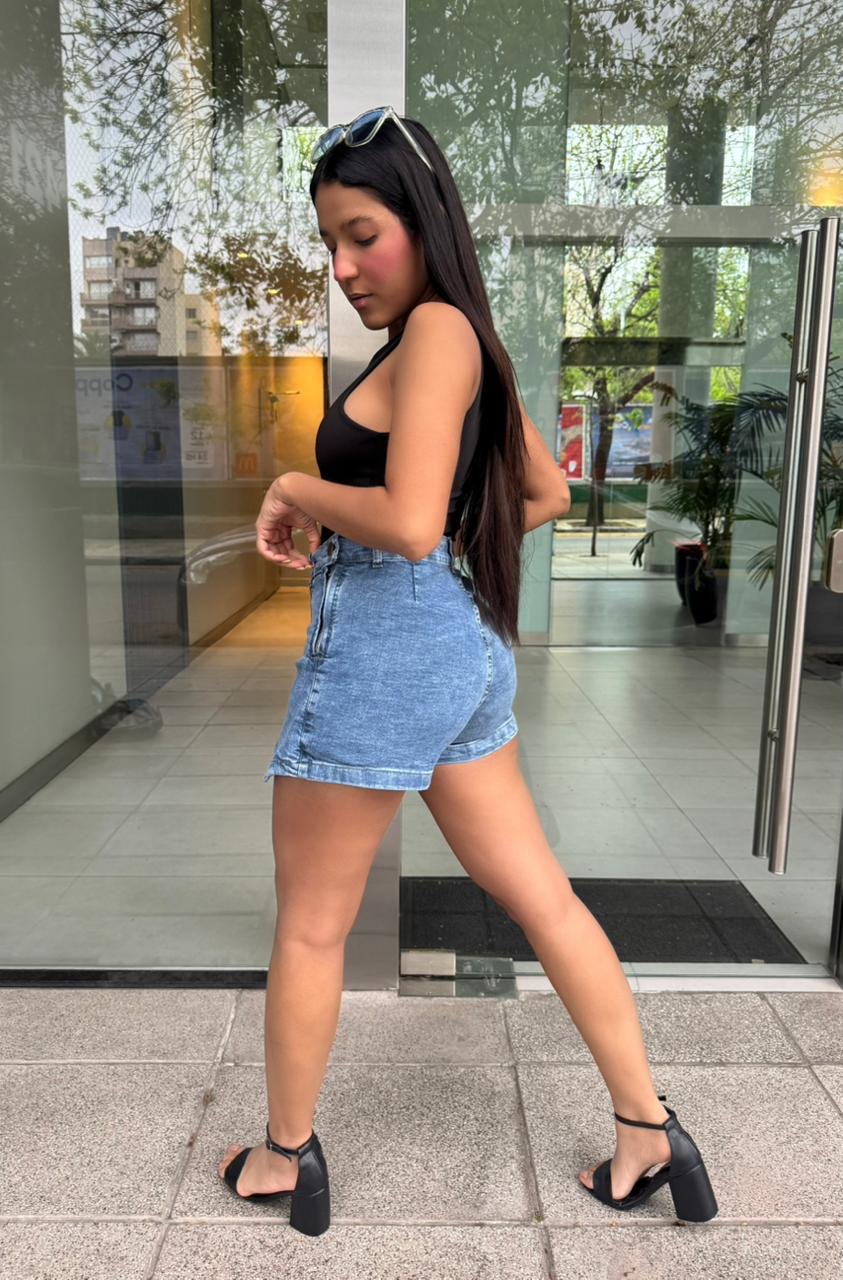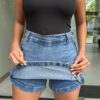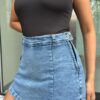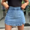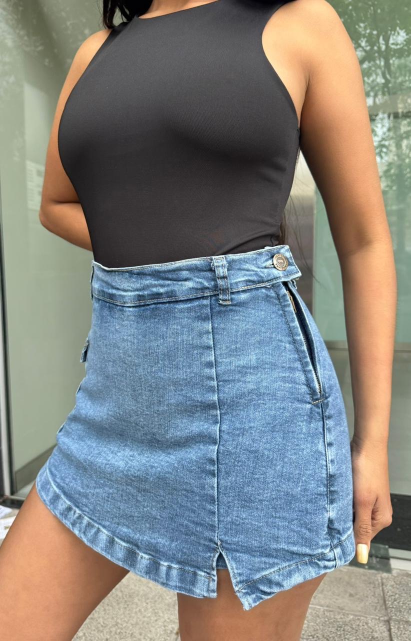 JADE / SHORT POLLERA AZUL ELASTIZADA CON CIERRE LATERAL TIRO ALTO TALLES 36 AL 54 ANA CLARA