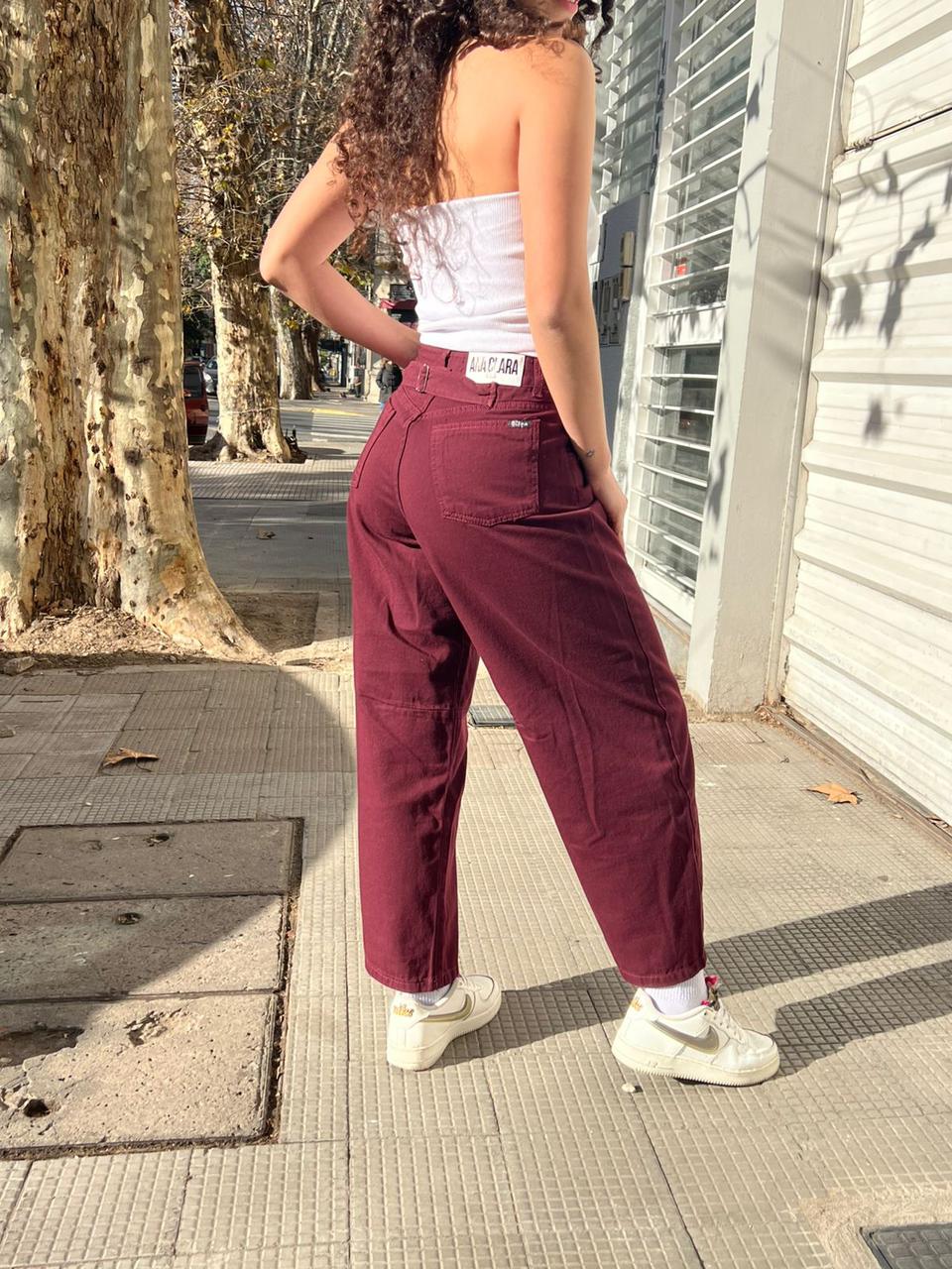 JEAN BAGGY ROJO VINO TIRO ALTO RÌGIDO CON HEBILLA ANA CLARA 36-54