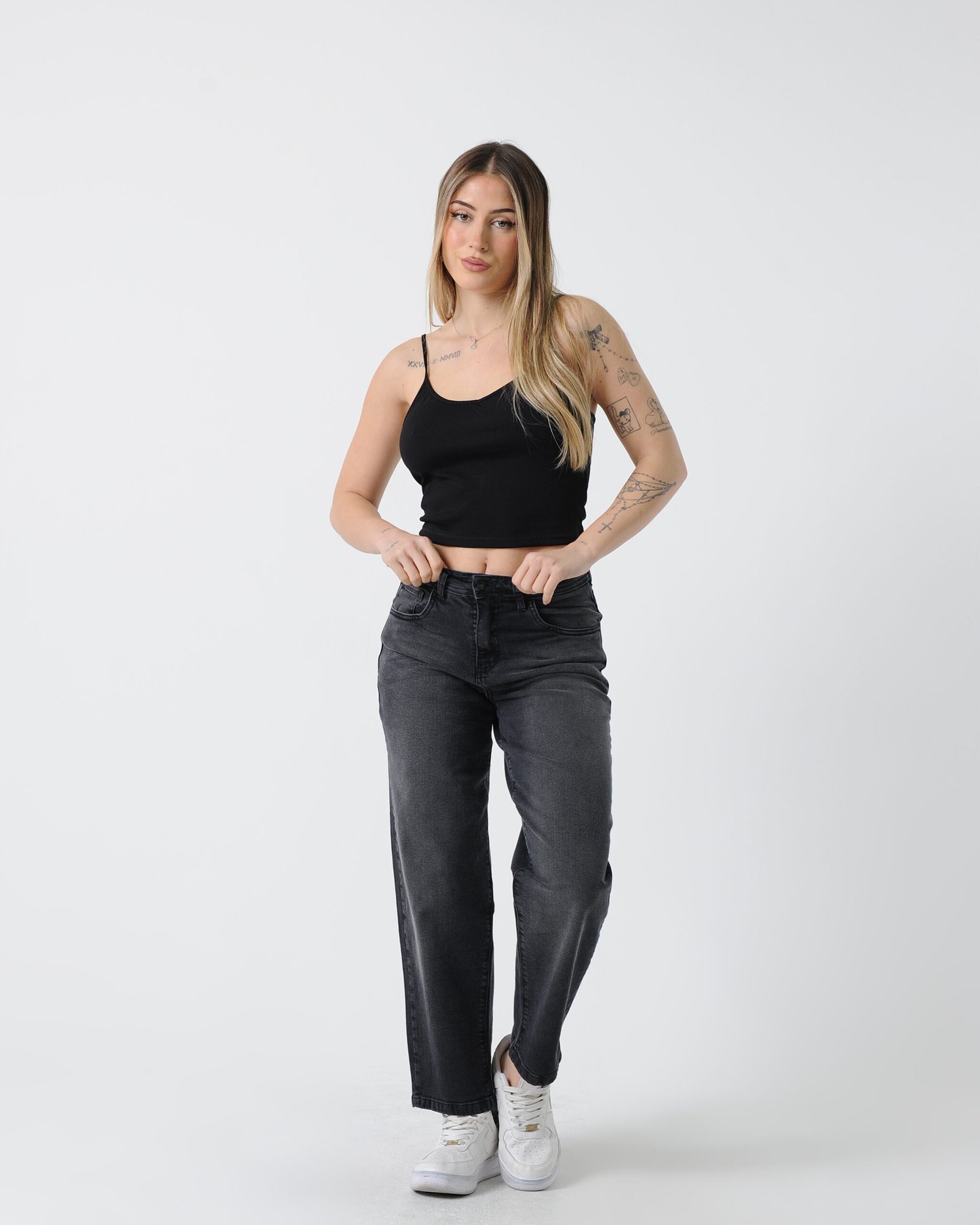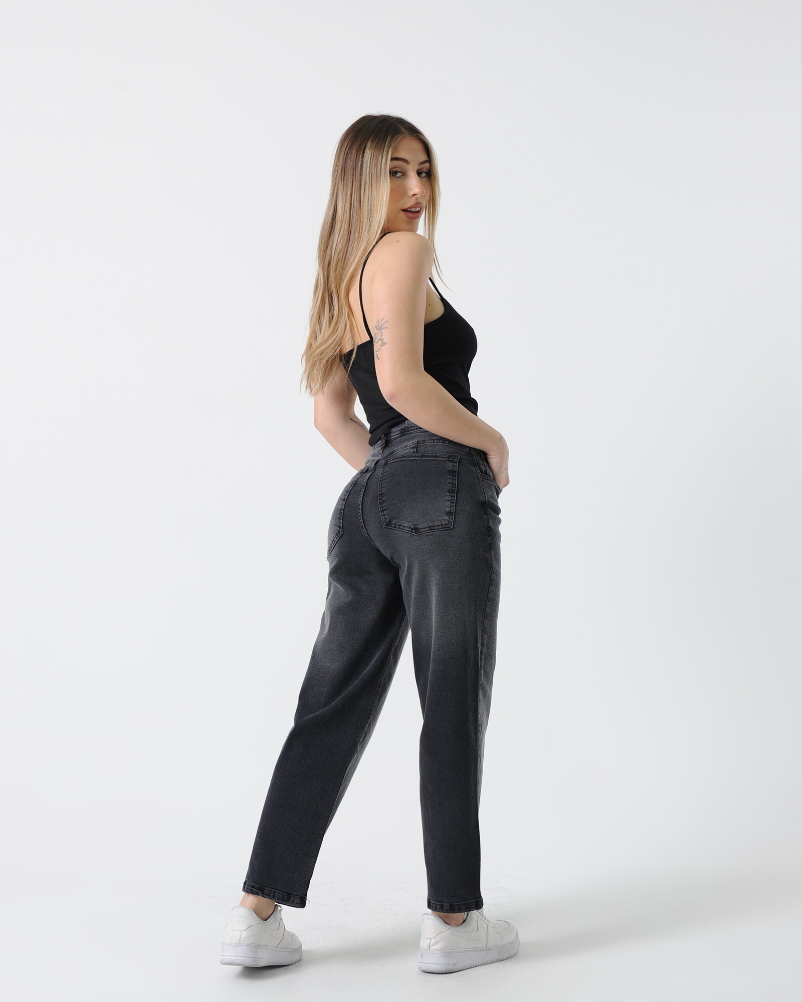 LANA Jean Mom Negro Semi Elastizado Tiro Alto Talles 36 Al 60 SONNE