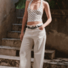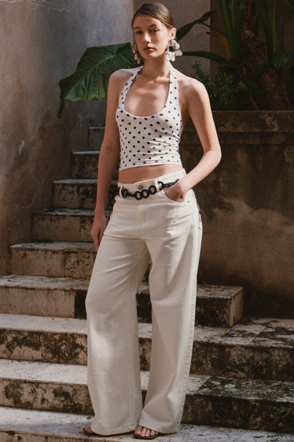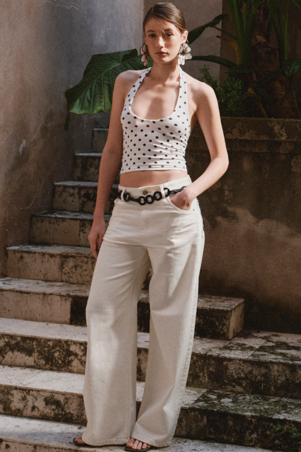 O JENER | JEAN WIDE LEG TIRO ALTO CREMA SEMI ELASTIZADO ISOSTASIA 34-42