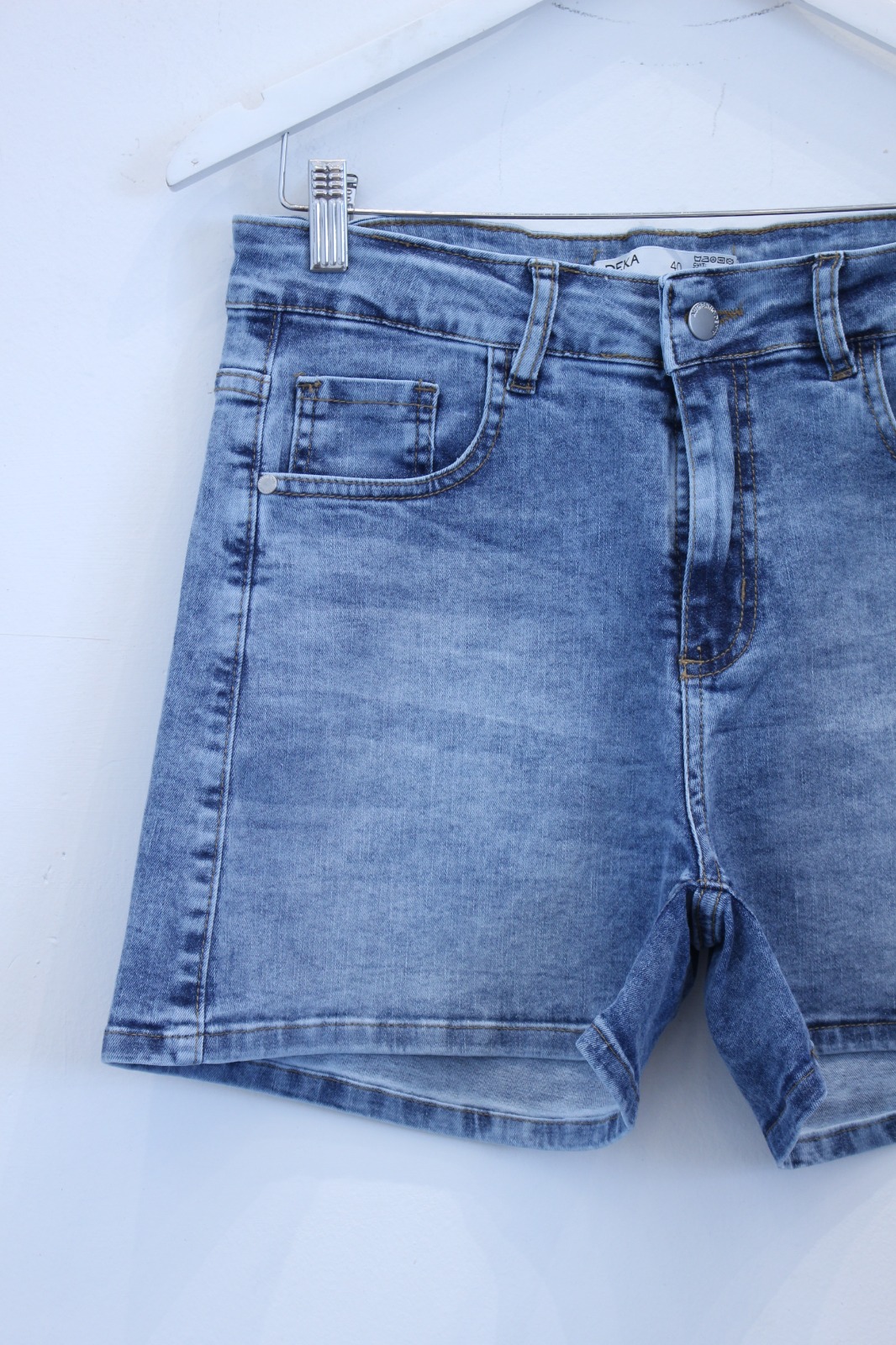 KAYLA | SHORT DE JEAN NEVADO CON BIGOTES ELASTIZADO TIRO ALTO TALLES 44 AL 54 DEKA