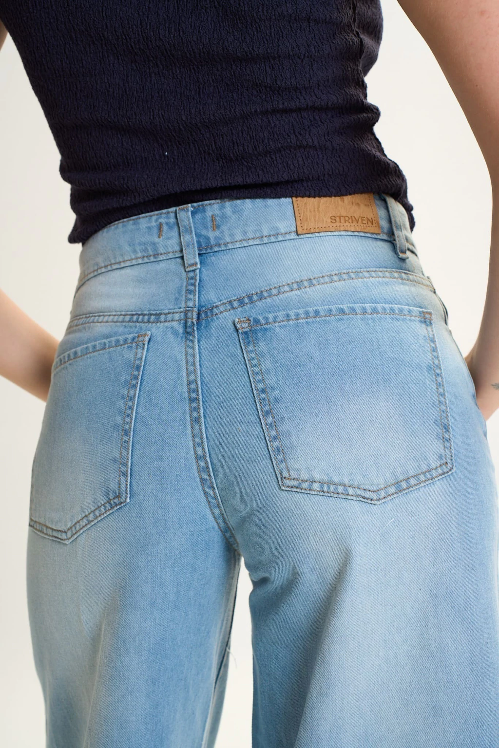 KIMONO-PALAZZO CELESTE RIGIDO TIRO ALTO TALLES 36 AL 46 STRIVEN