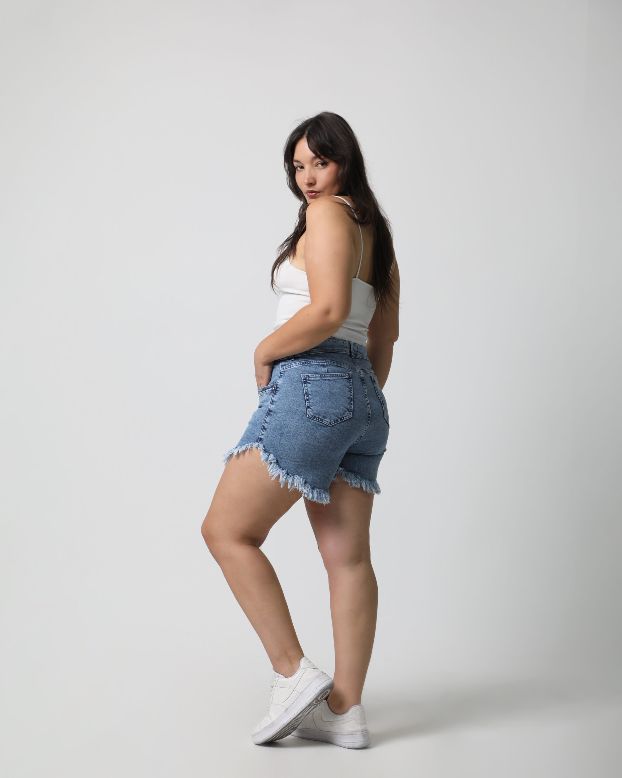 KISSA-SHORT CELESTE DE JEAN DESFLECADO EN BOTA CON TACHAS TIRO ALTO TALLES 36 AL 60 SONNE URBAN