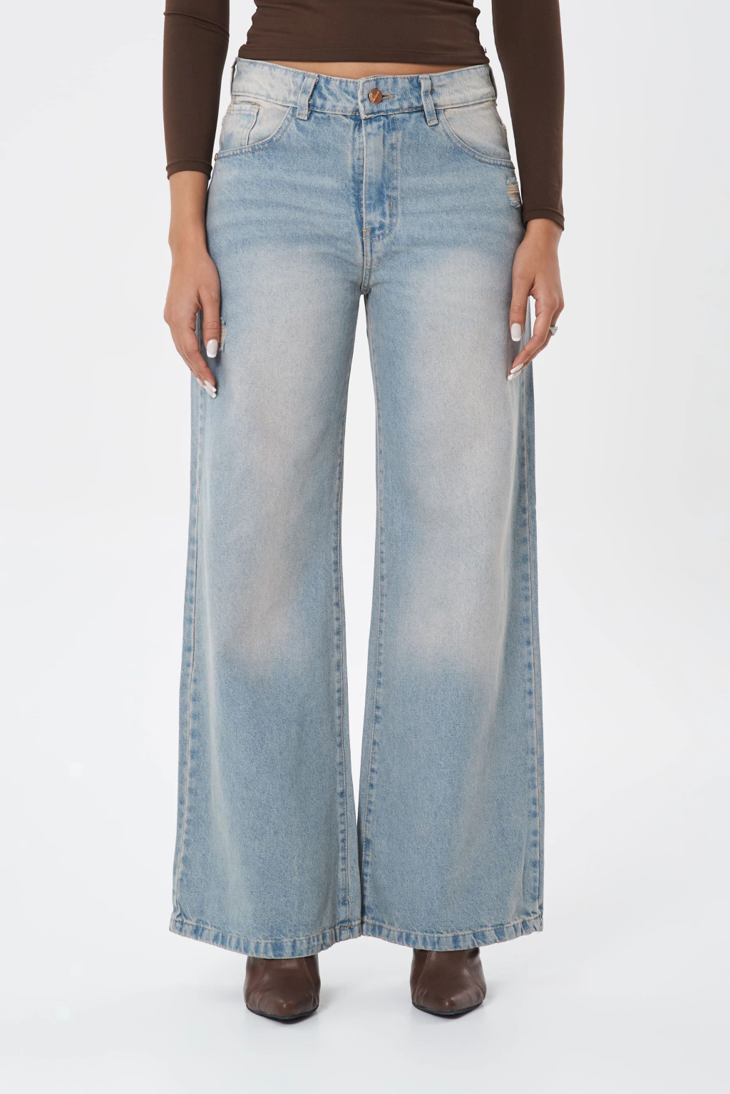 KOLKA WIDE LEG CELESTE MATIZADO TIRO MEDIO RIGIDO TALLES 44 AL 48 STRIVEN