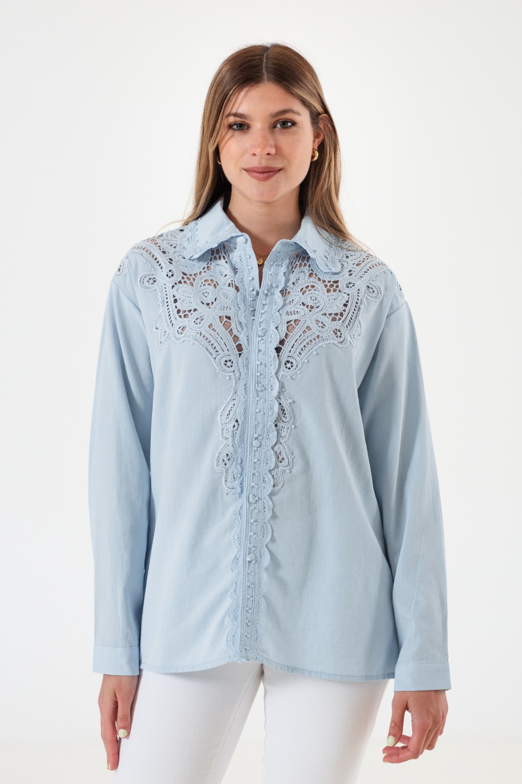 KY069 | CAMISA DE POPLIN VISCOSA CON APLIQUES SHINE VARIOS COLORES TALLES DEL M AL XXL