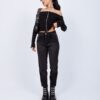 WIDE LEG CARGO NEGRO CON HILO BLANCO H-REINA RIGIDO 36 Al 46