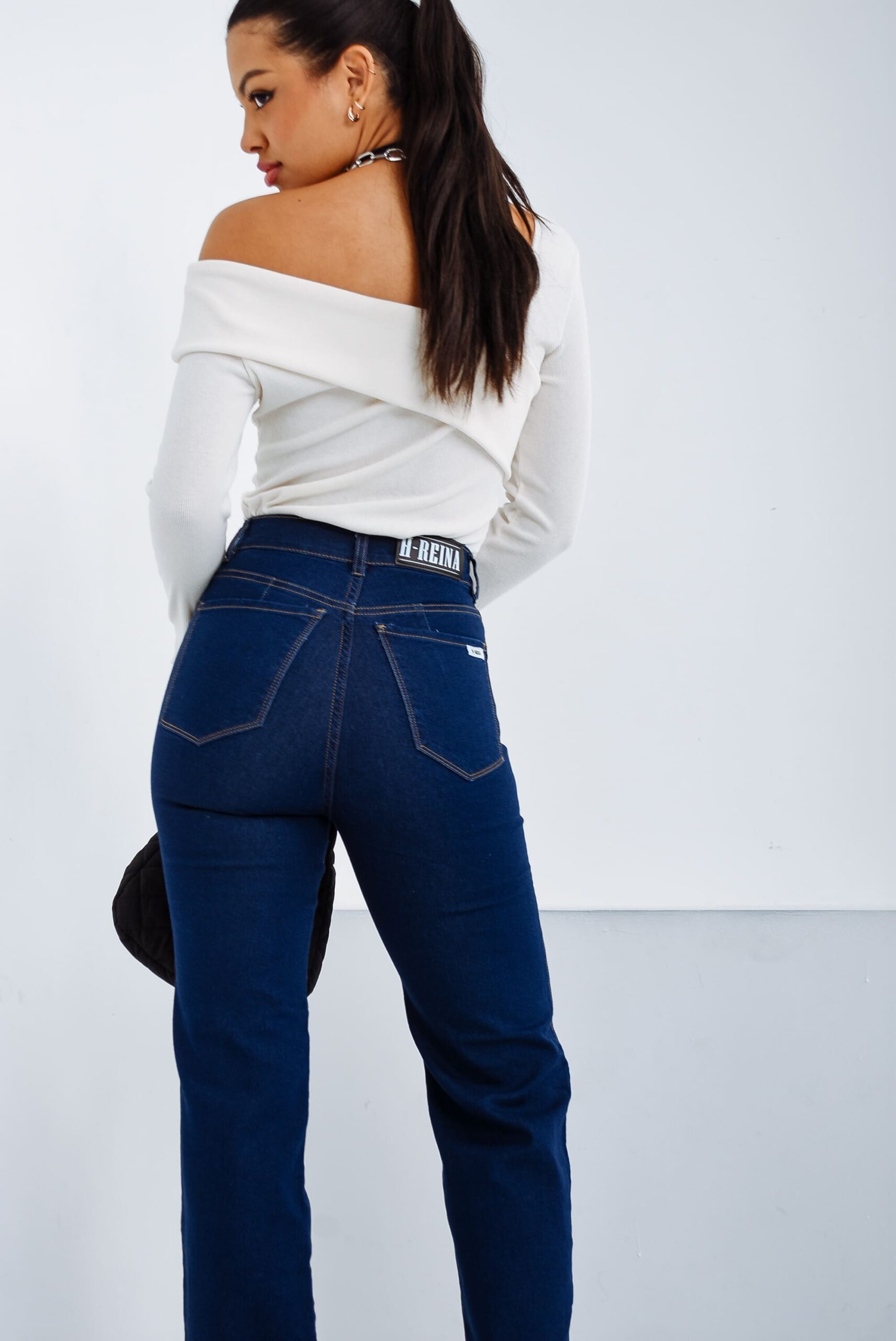 LEIA | JEAN ELASTIZADO OSCURO TIRO ALTO TALLES 34 AL 38 H-REINA