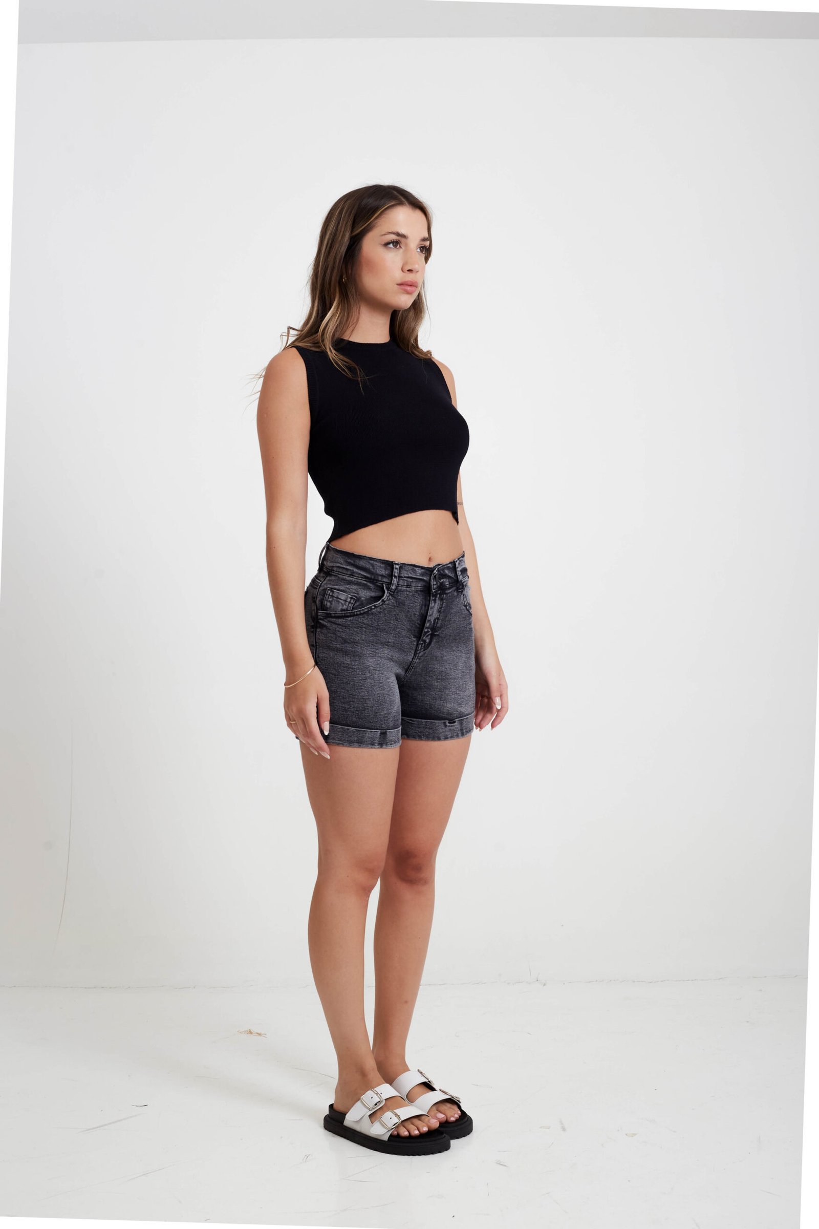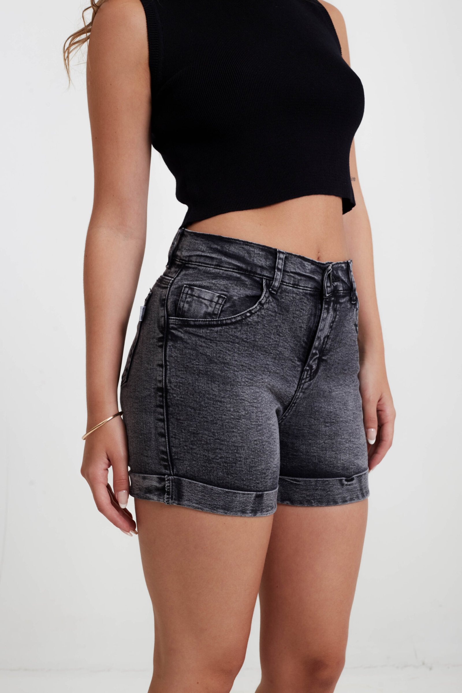 LESLI | SHORT CLASICO GRIS NEVADO ELASTIZADO C/ DOBLES TIRO ALTO TALLES 36 AL 50 RUMAJU