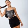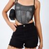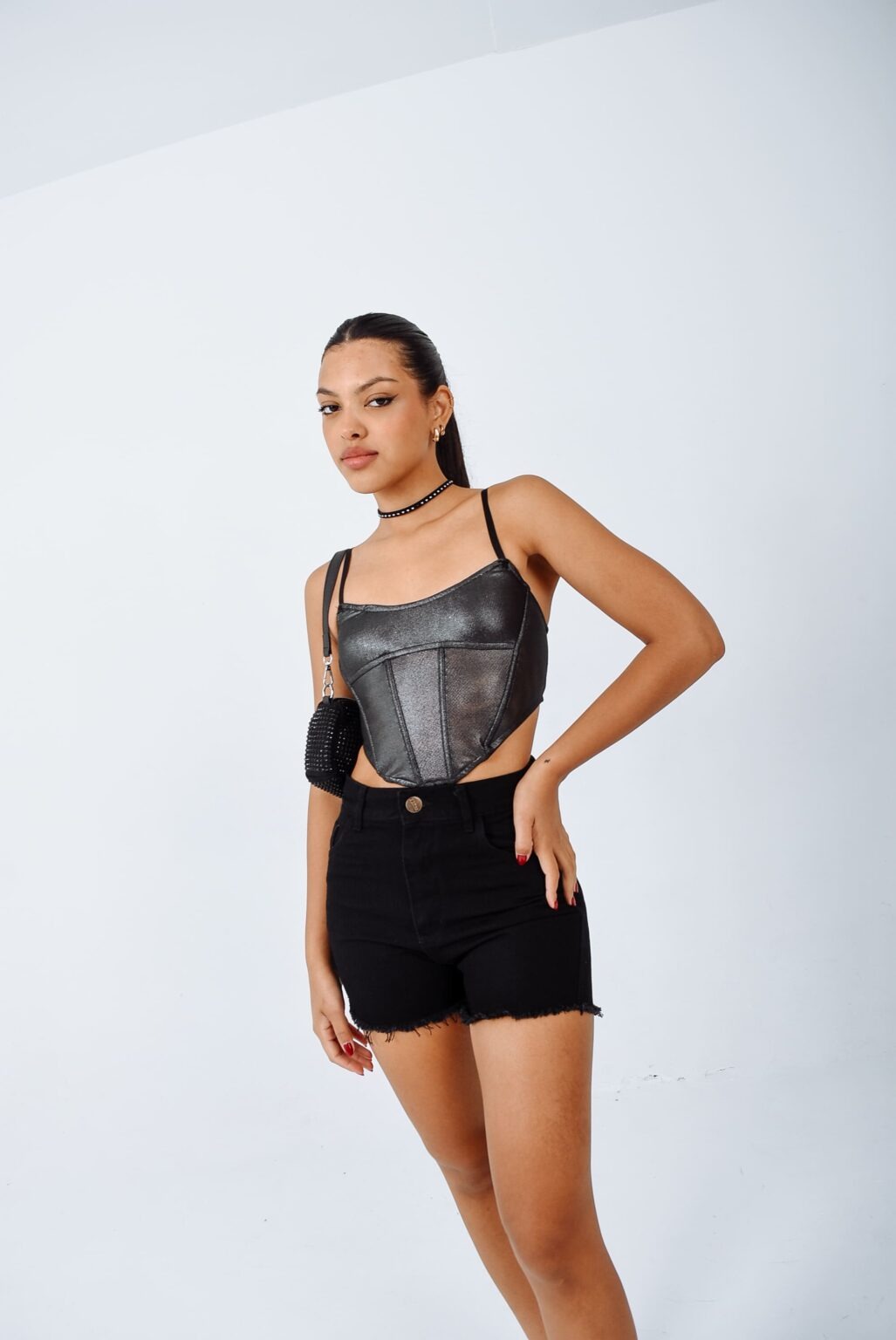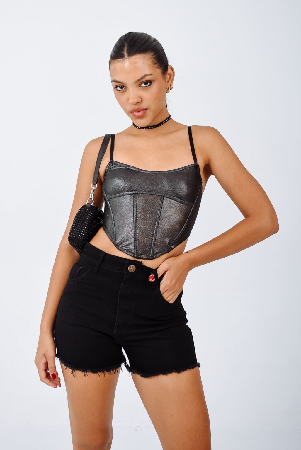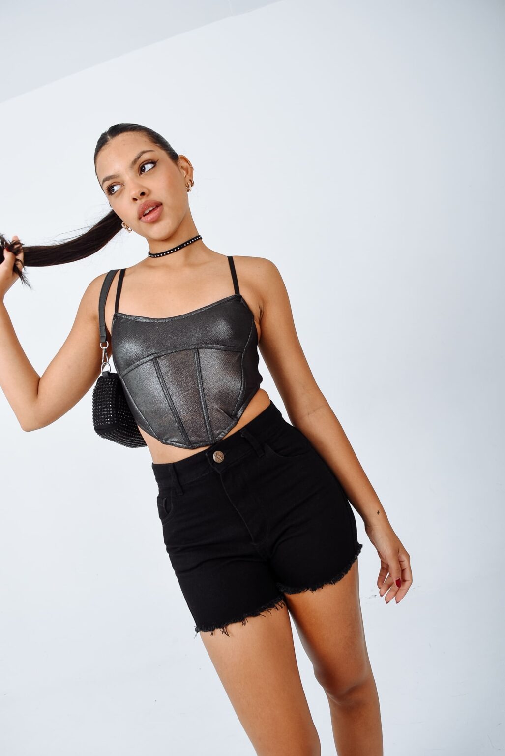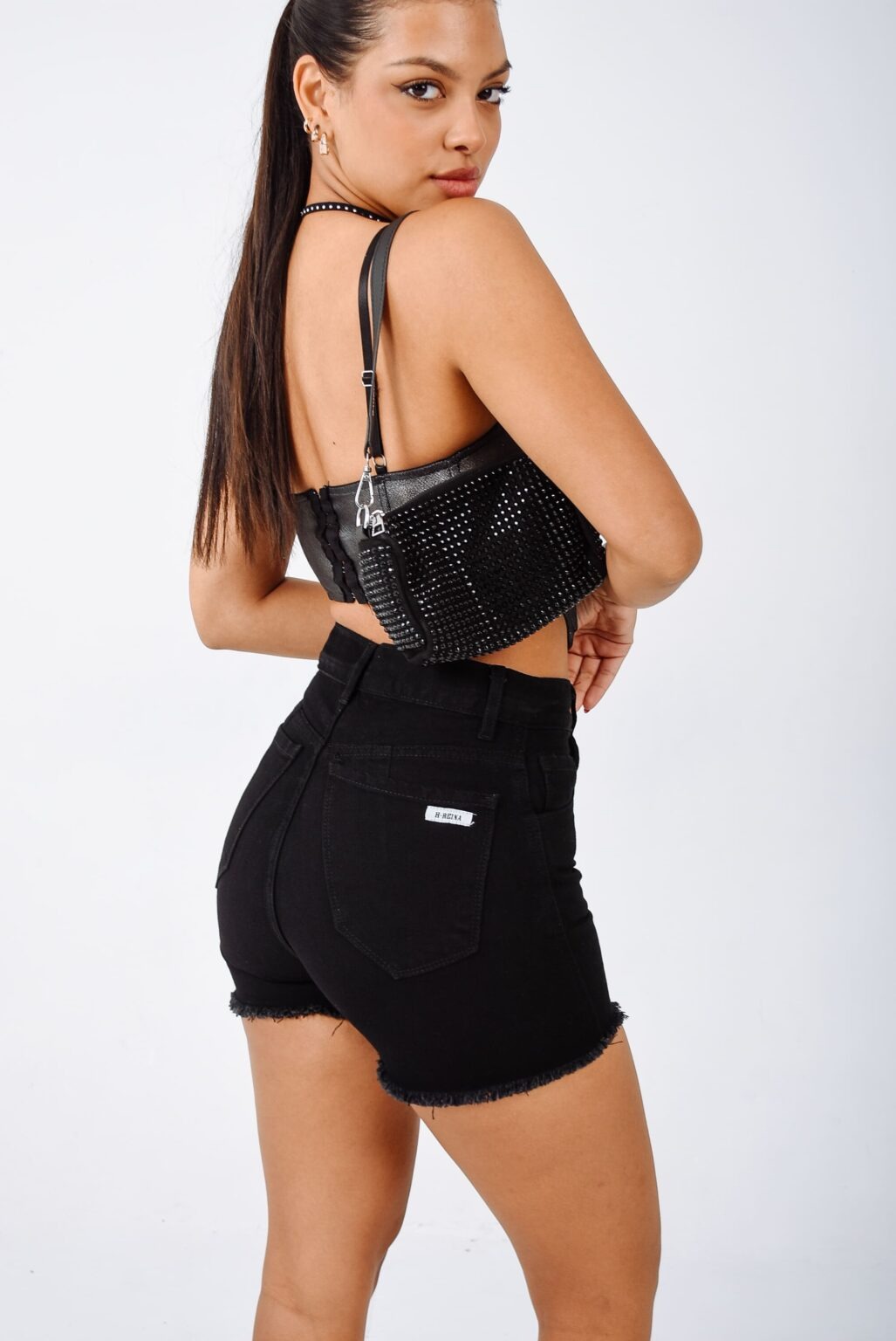 LISO | SHORT NEGRO RIGIDO CON DESFLECADO EN BOTAMANGA TIRO ALTO TALLES 34 AL 46 H-REINA
