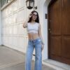 LOGAN | WIDE LEG RIGIDO CELESTE CON BIGOTES TIRO MEDIO TALLES 34 AL 46 H-REINA