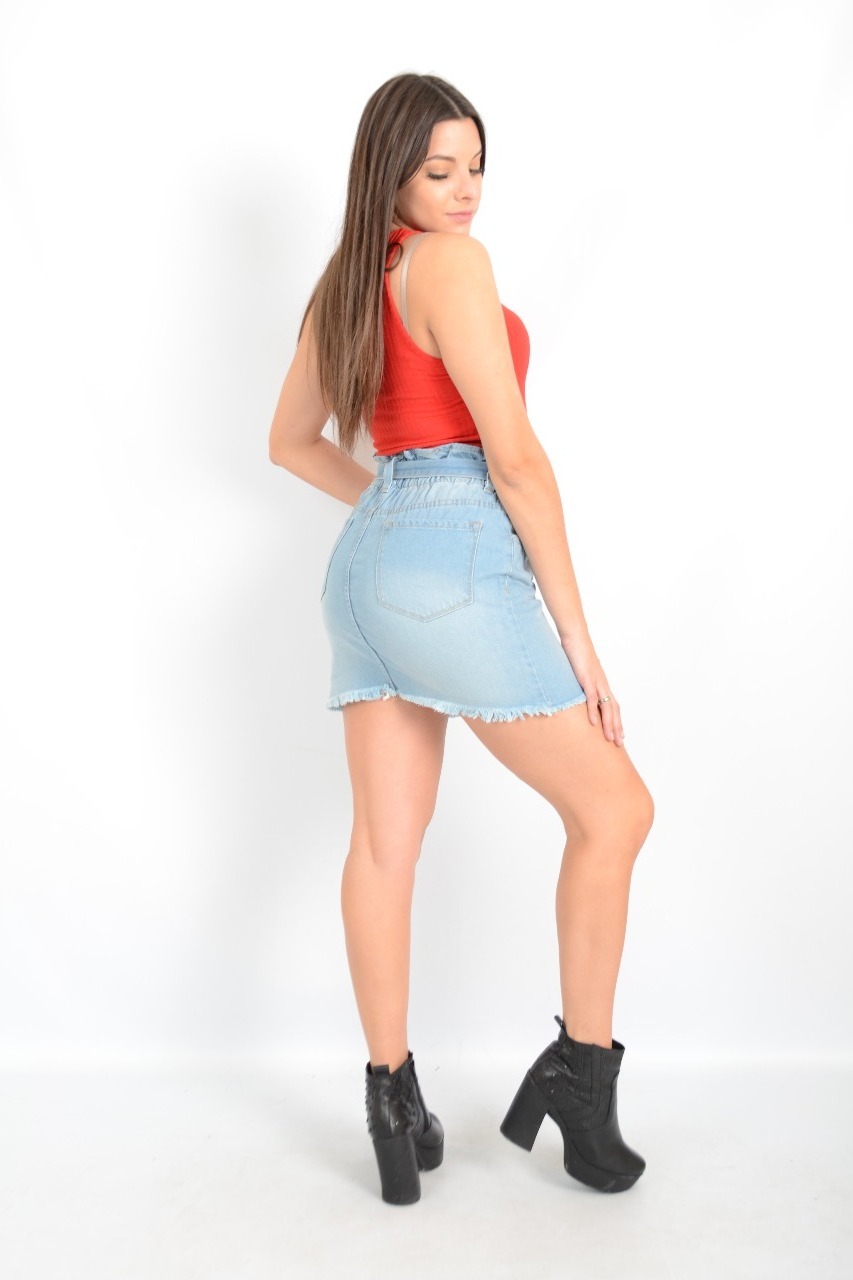 M-33 MINI MOÑO Celeste Clasico con cinta desflecado H/CAMEL tiro alto talles 36 al 46 versus