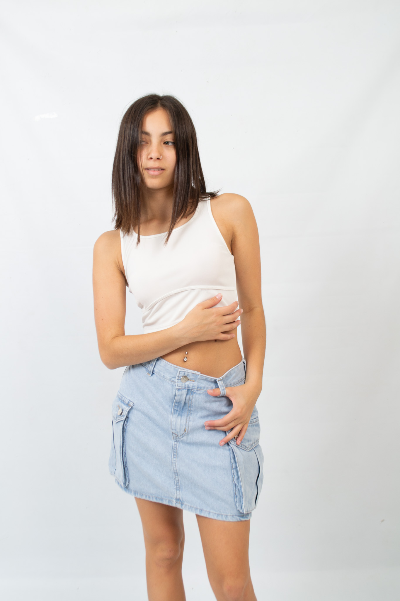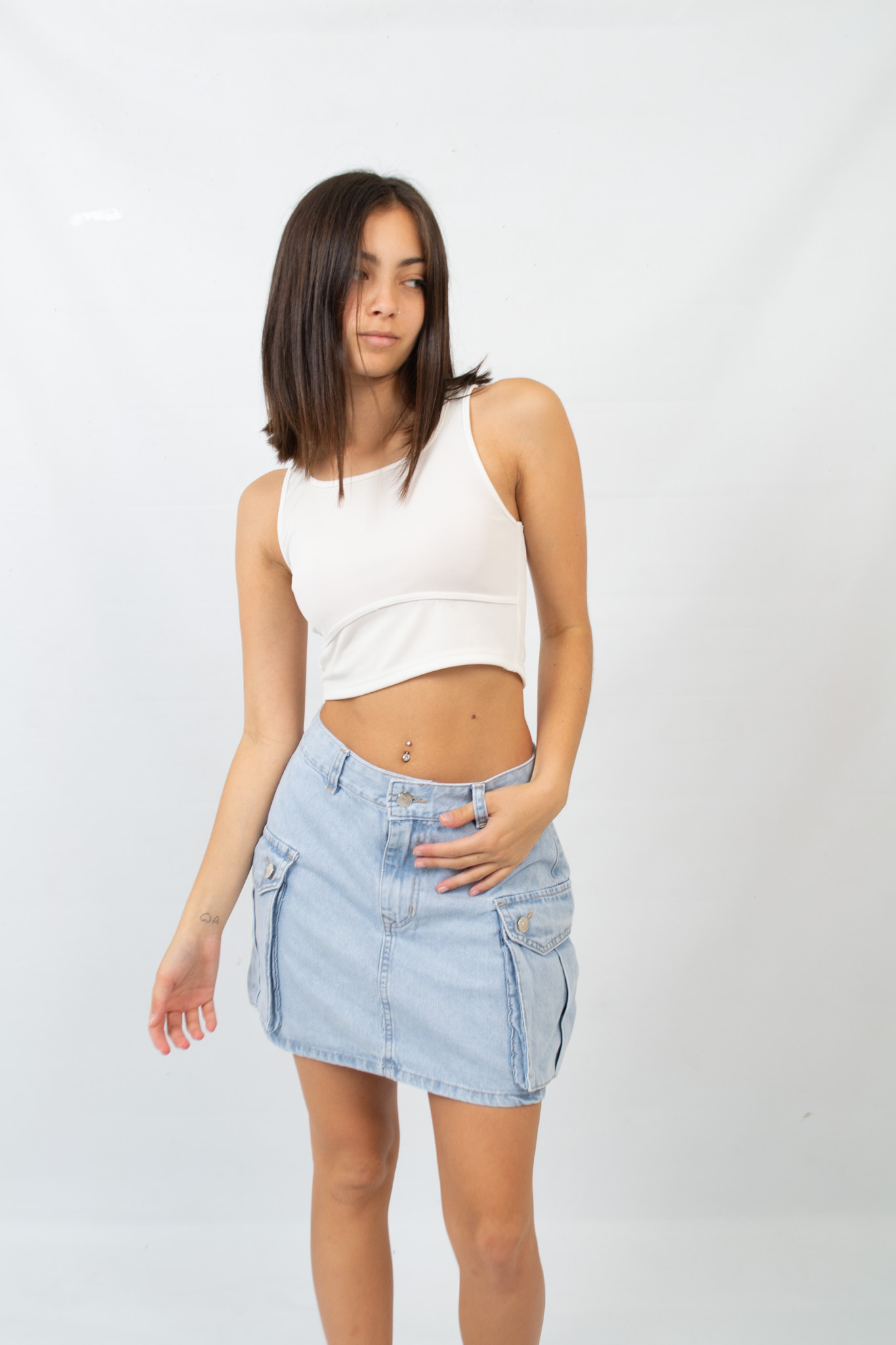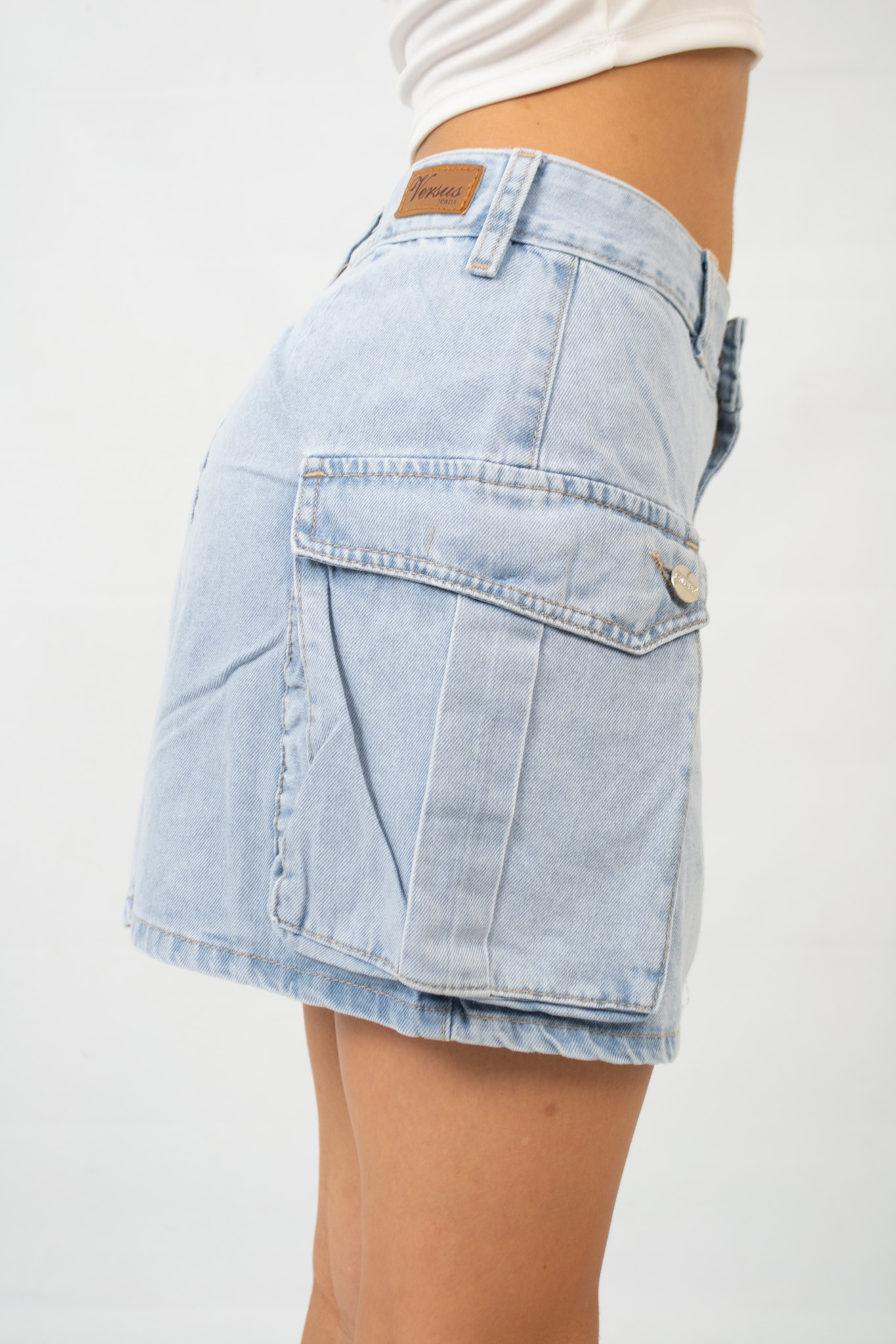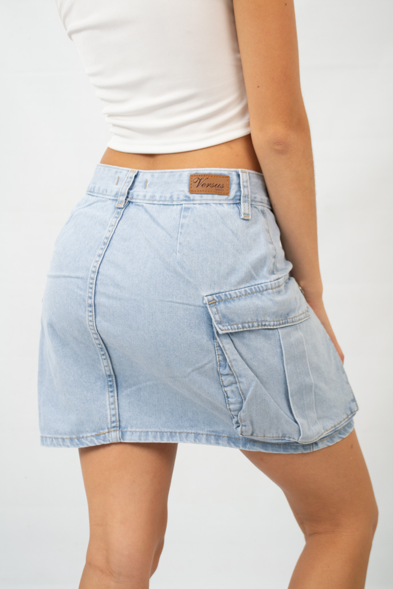 M-48 MINI POLLERA SLOUCHY CELESTE NEVADO BOLSILLO CARGO VERSUS 36-42