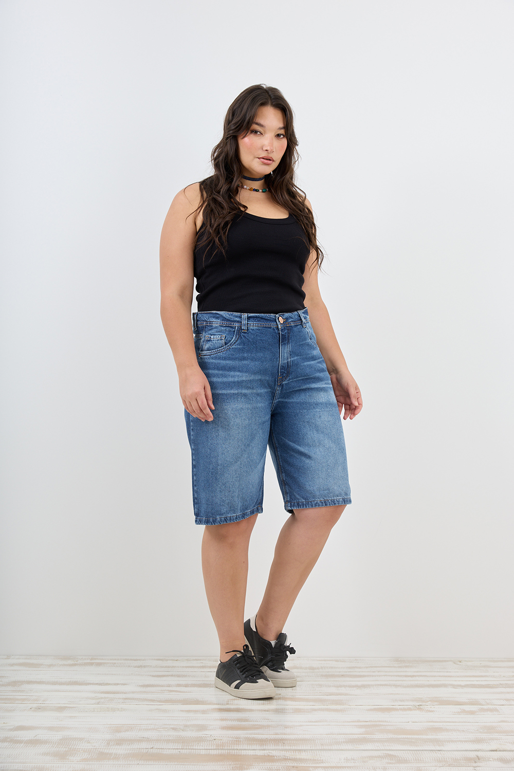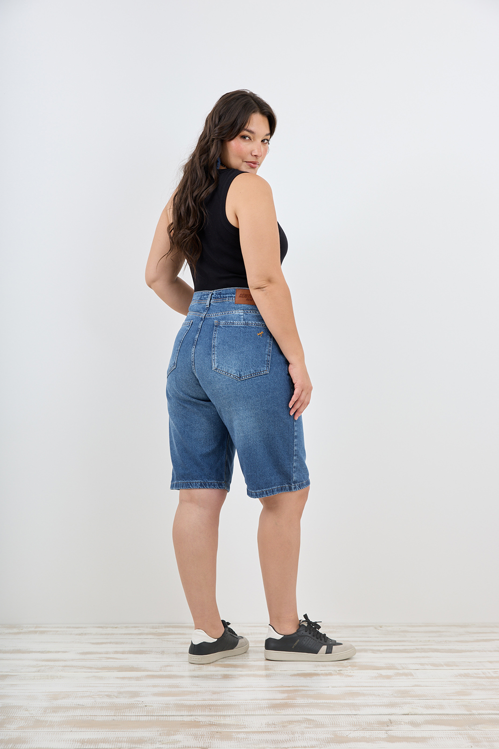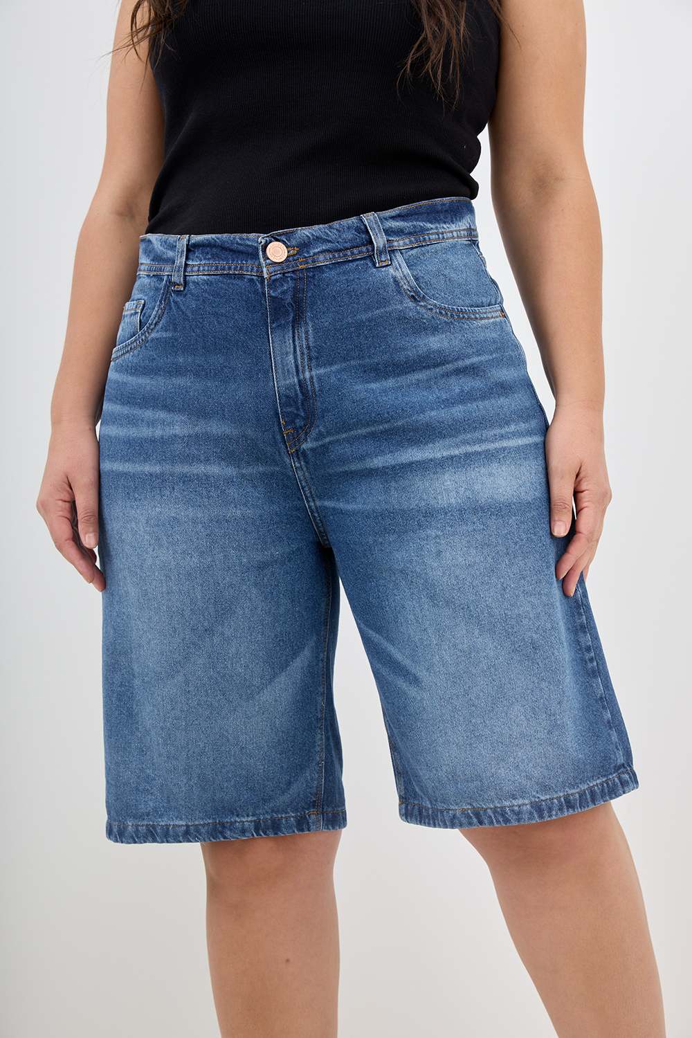M-582 | BERMUDA BAGGY AZUL RÍGIDO CLÁSICO BIGOTES TIRO ALTO TALLE 46 AL 54 CENITHO JEANS