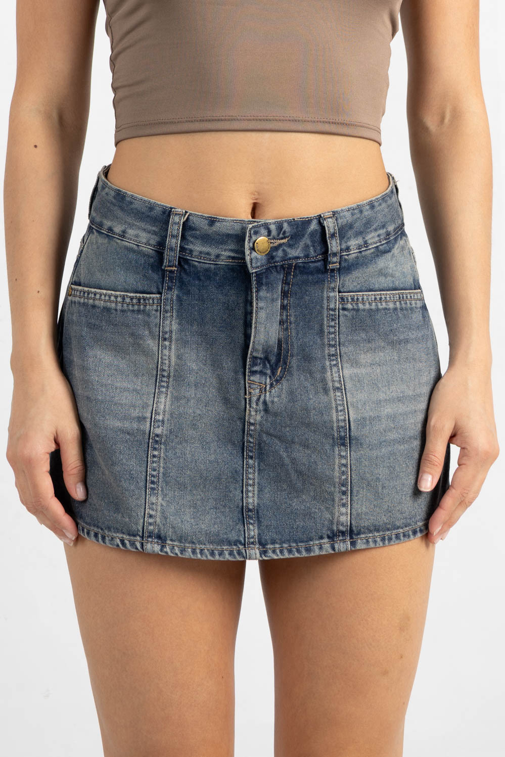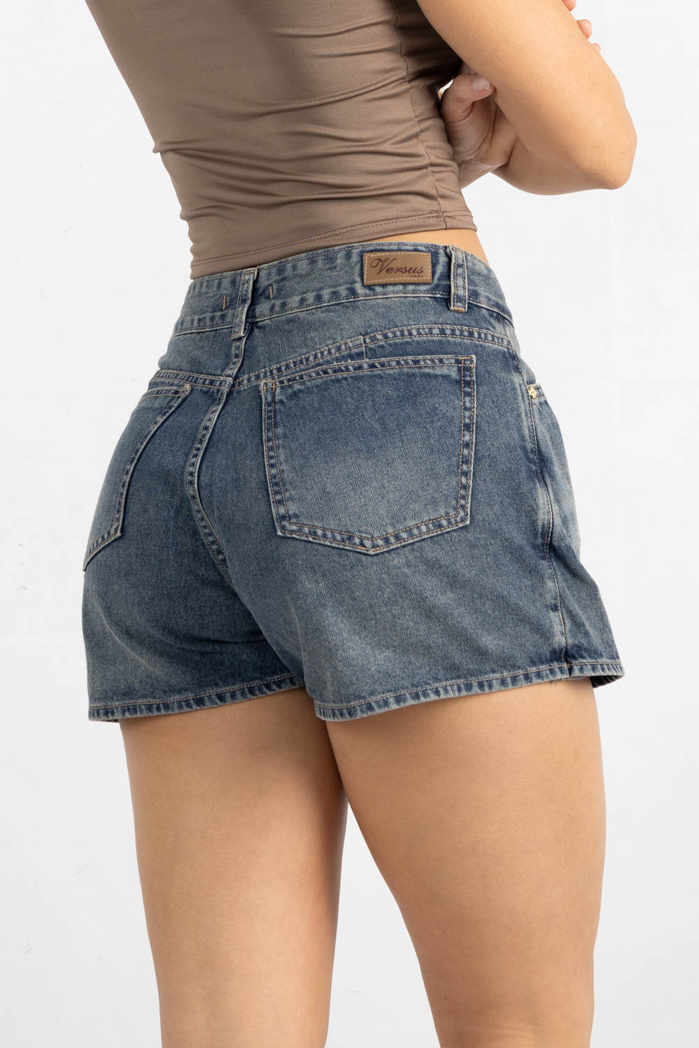 M-74 | SHORT POLLERA AZUL OXIDO RIGIDO TIRO ALTO TALLES 38 AL 46 VERSUS