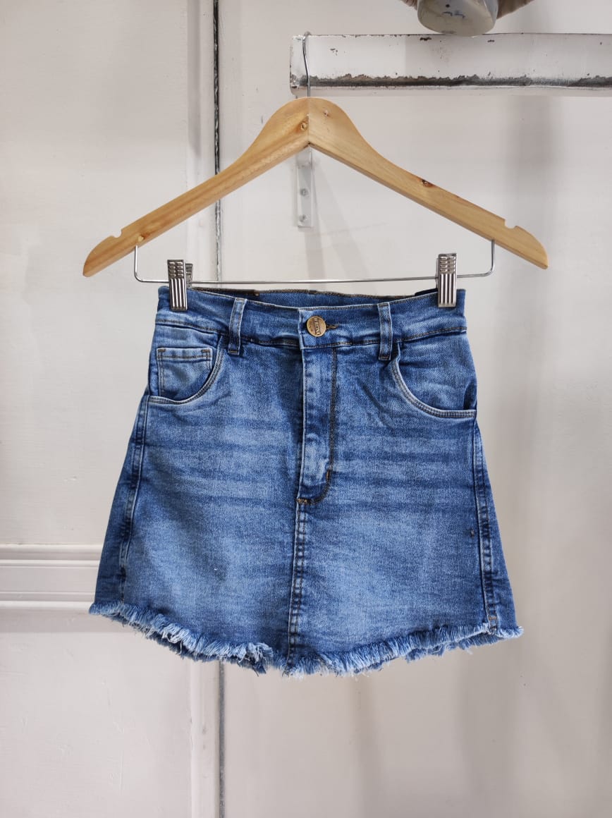 SKY CECI – SHORT POLLERA DE JEAN RIGIDO TIRO BAJO TALLES 34 AL 46 H-REINA DENIM