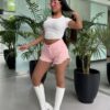 MAR – SHORT ROSA CON DESFLECADO EN BOTA TIRO ALTO TALLES 36 AL 54 ANA CLARA