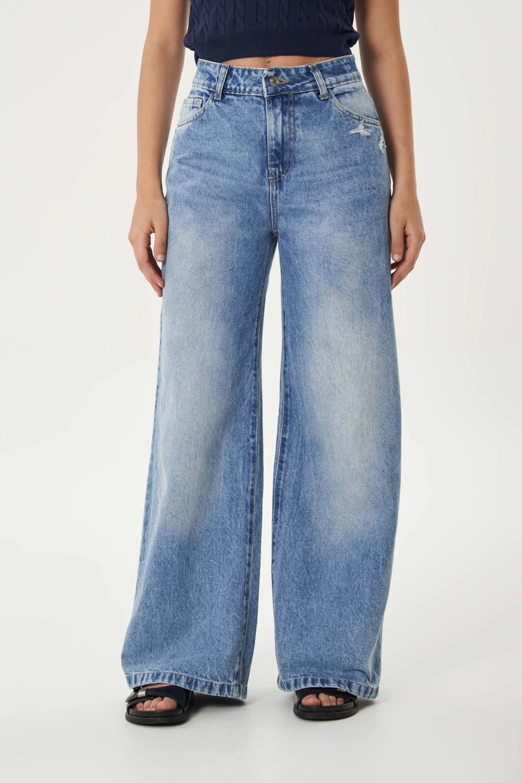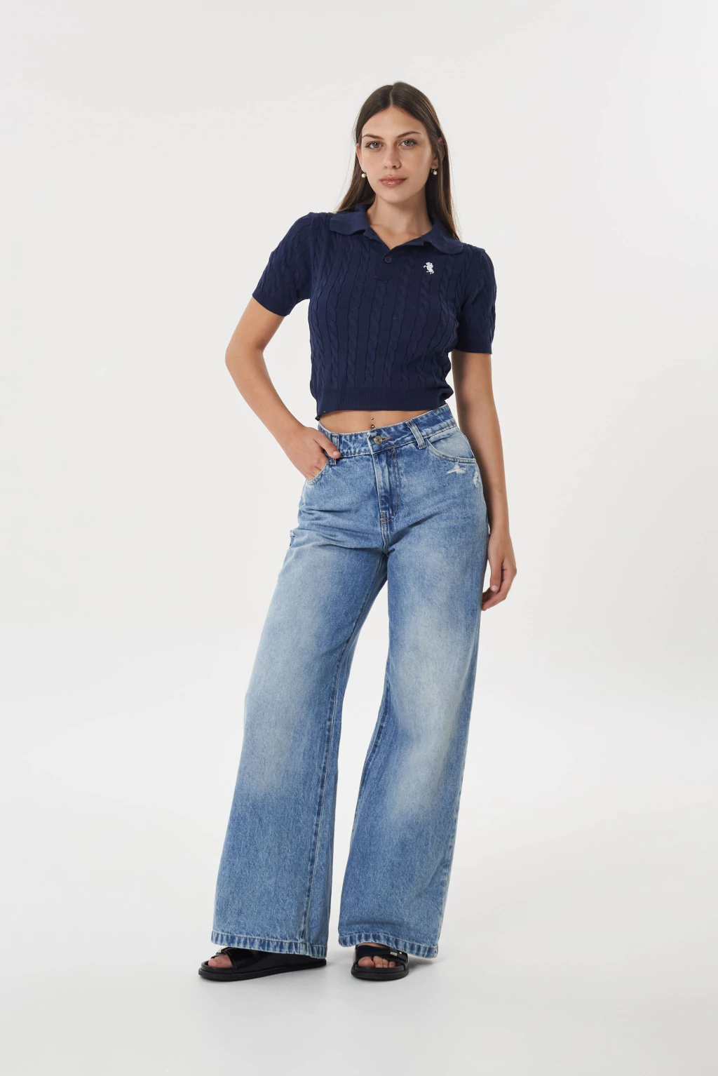 MAVERICK-WIDE LEG CELESTE LOCALIZADO RIGIDO CON MINI DESGASTES EN BOLSILLOS TIRO ALTO TALLES 36 AL 46 STRIVEN JEANS
