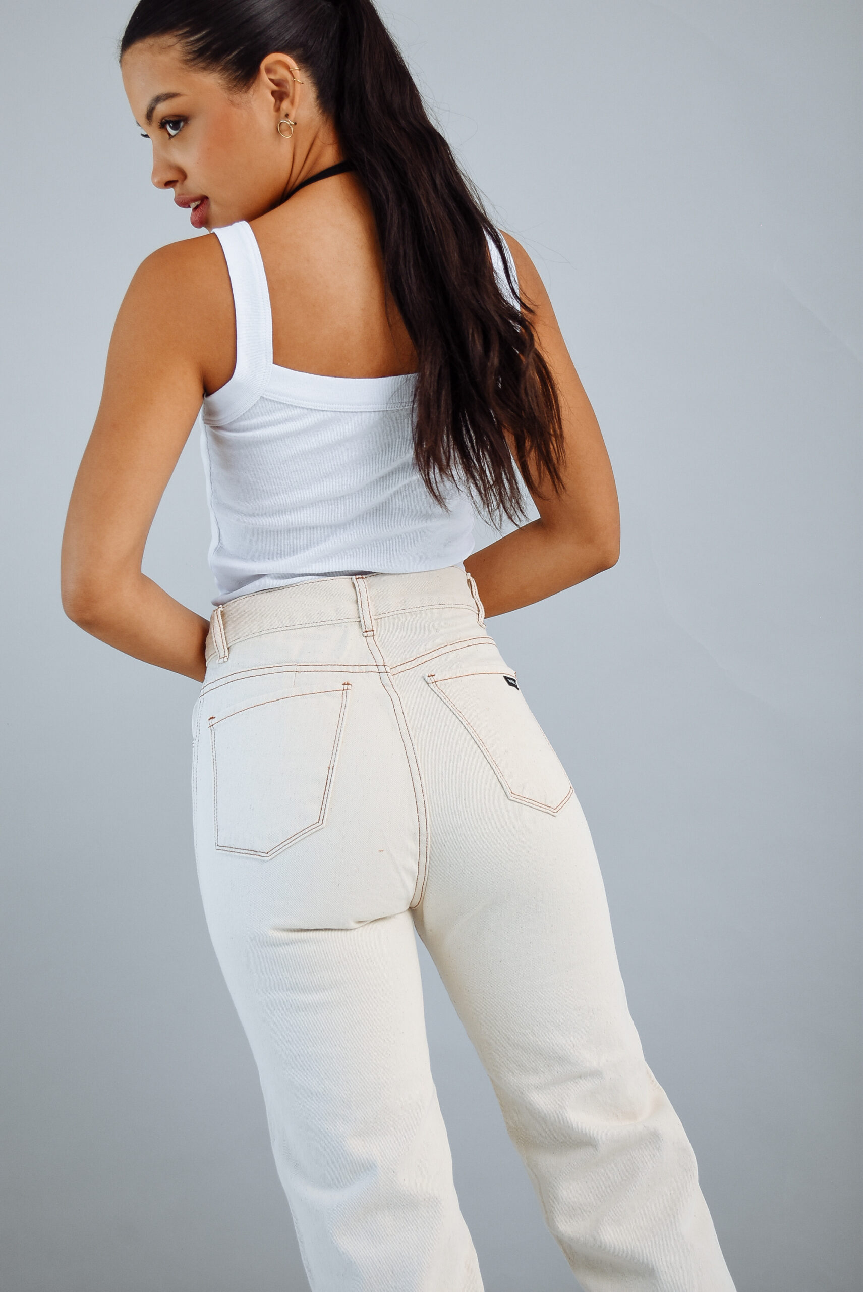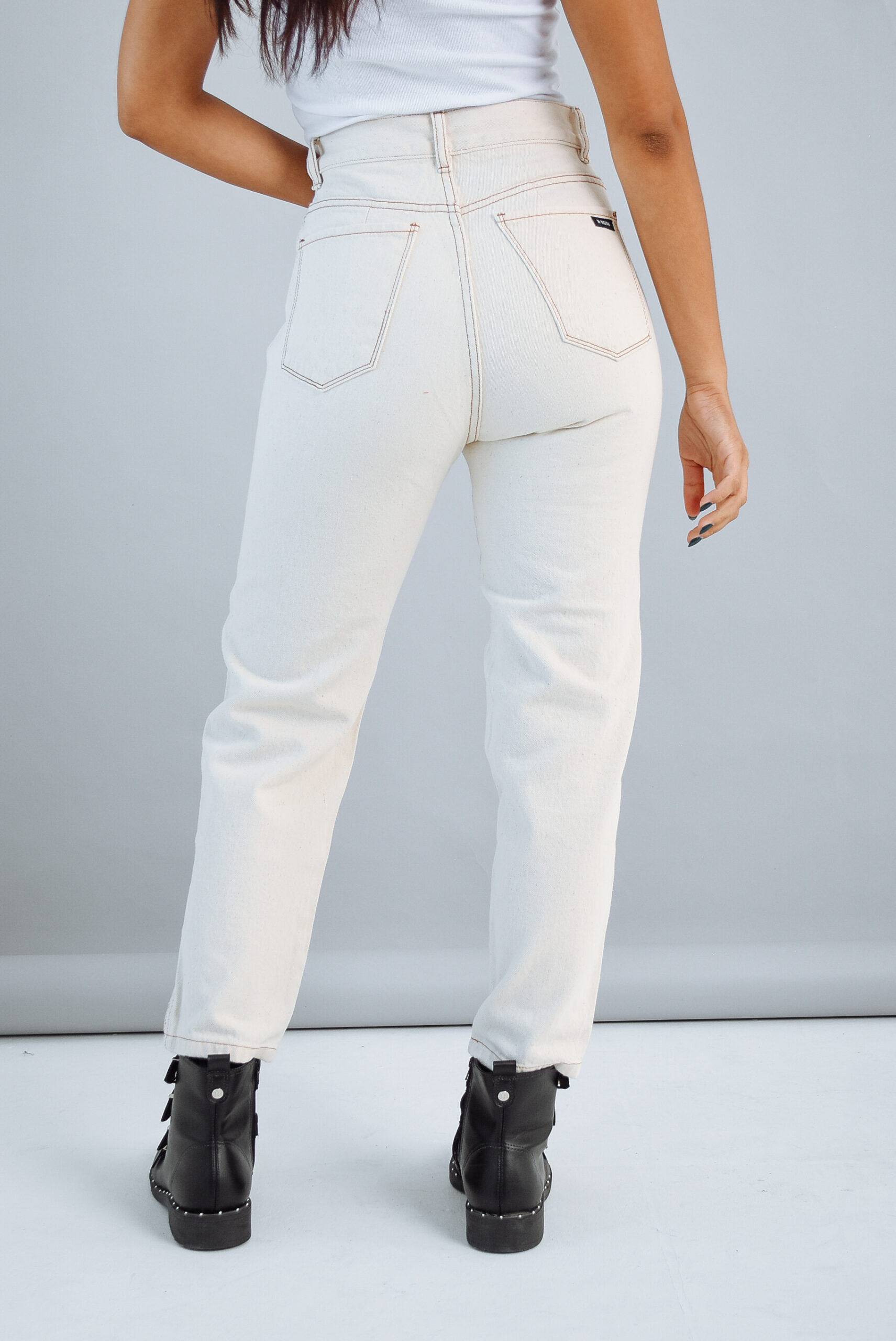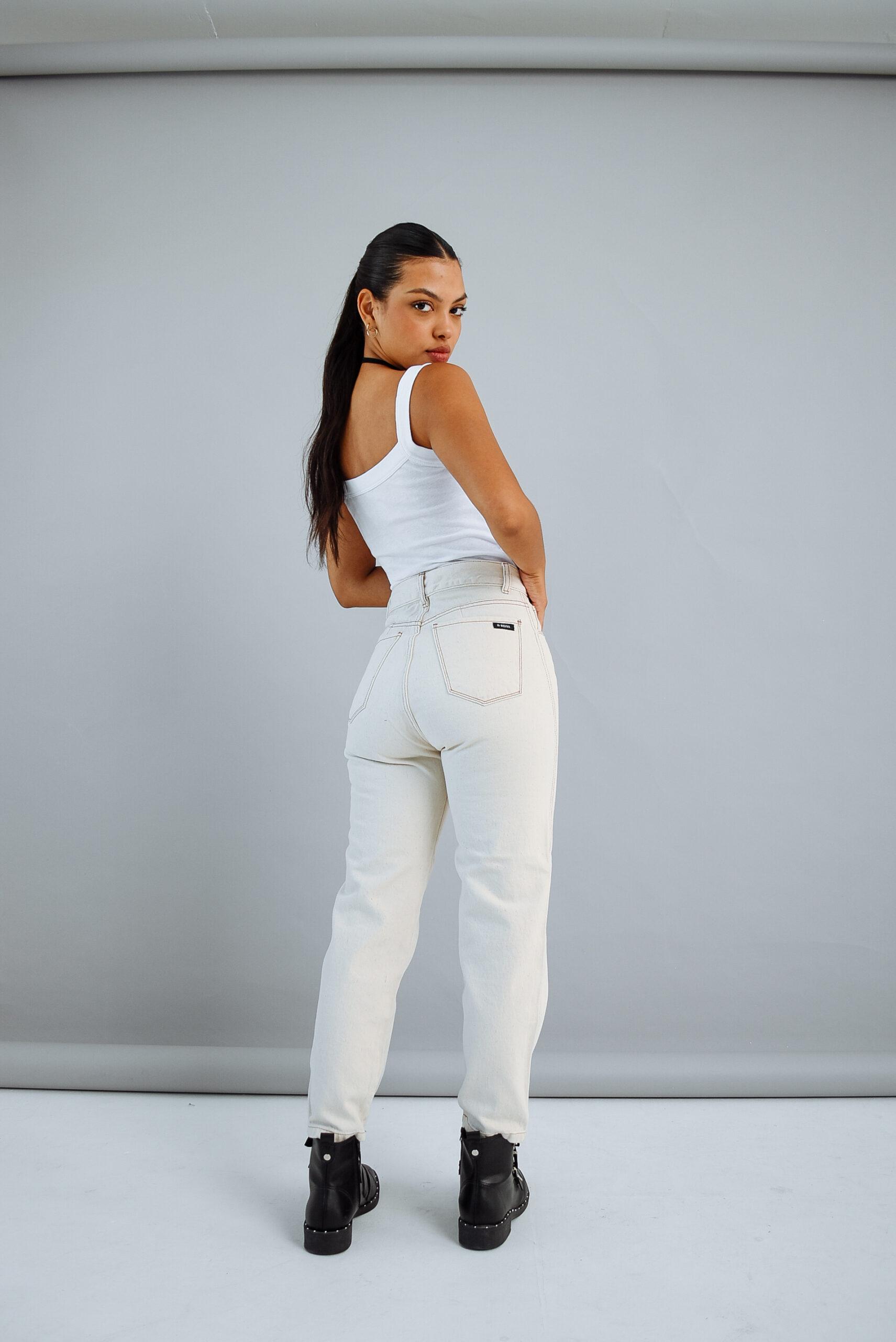 MOM RIGIDO CREMA DE LINO HILO NARANJA TIRO ALTO TALLES 34 AL 46 H-REINA