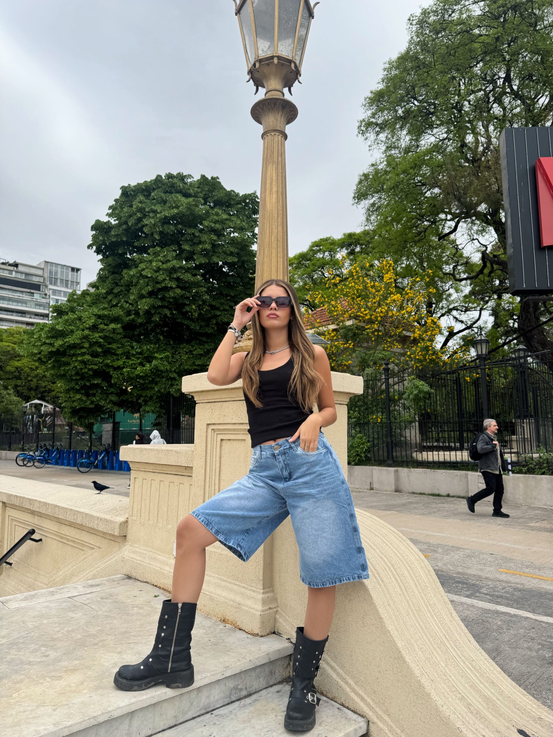 NAOMI JORT – BERMUDA BAGGY DE JEAN CELESTE TIRO ALTO TALLES 34 AL 46 H-REINA