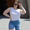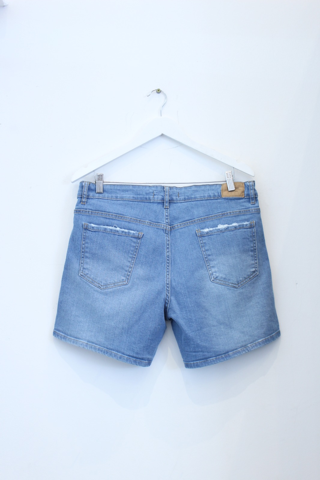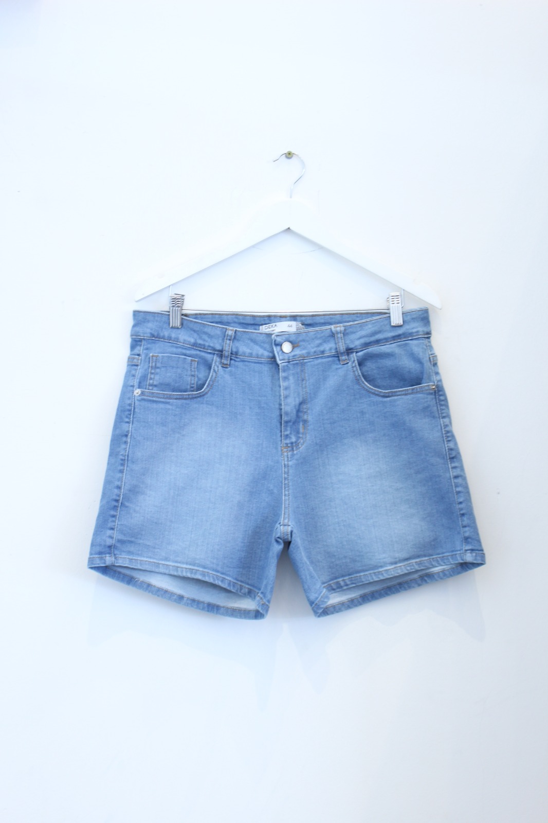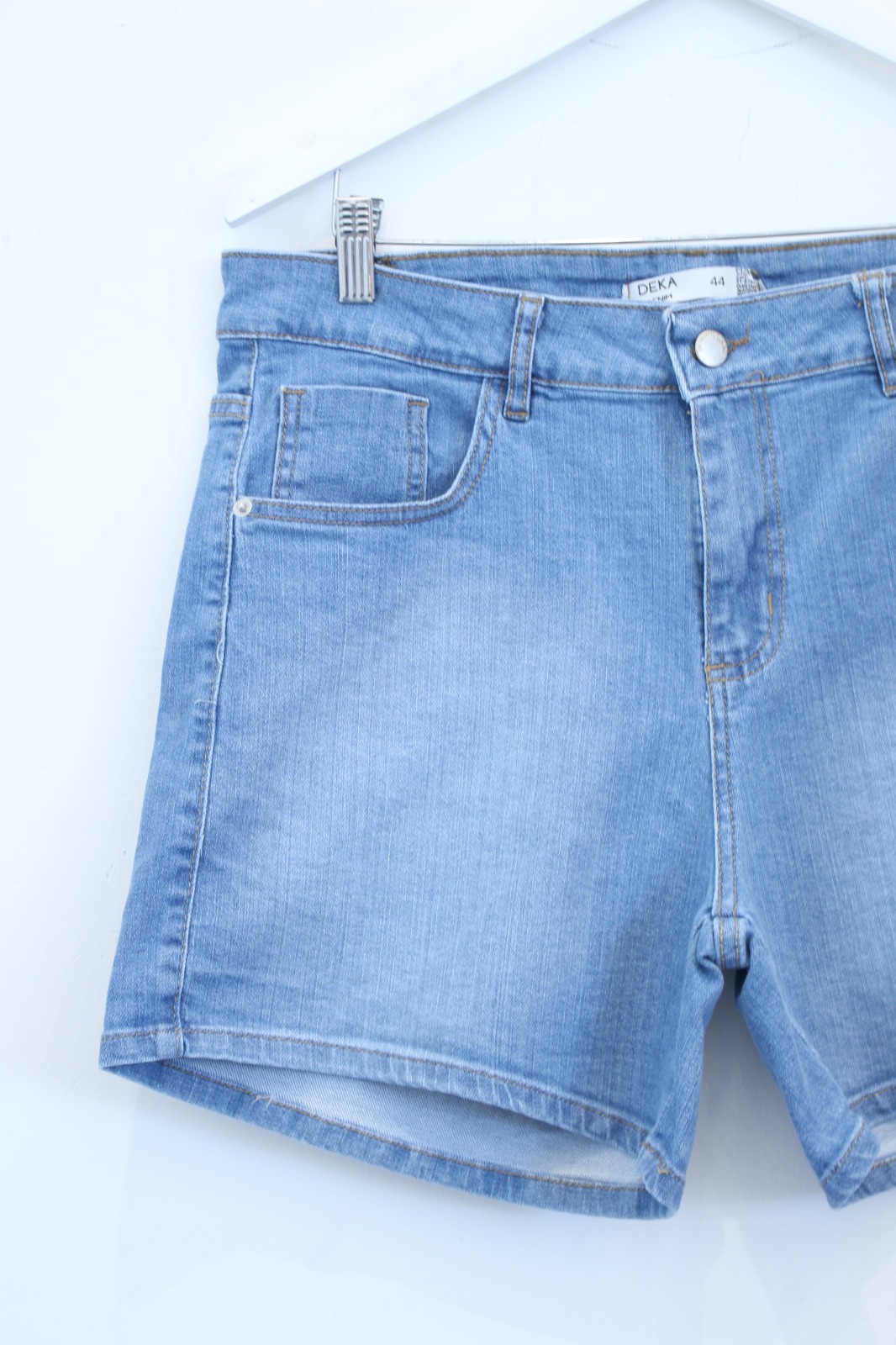 NARE | SHORT ELASTIZADO CELESTE GASTADO EN BOLSILLOS TRASEROS TIRO ALTO TALLES 44 AL 54 DEKA