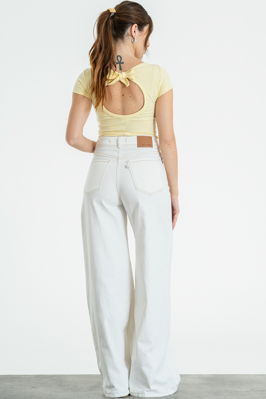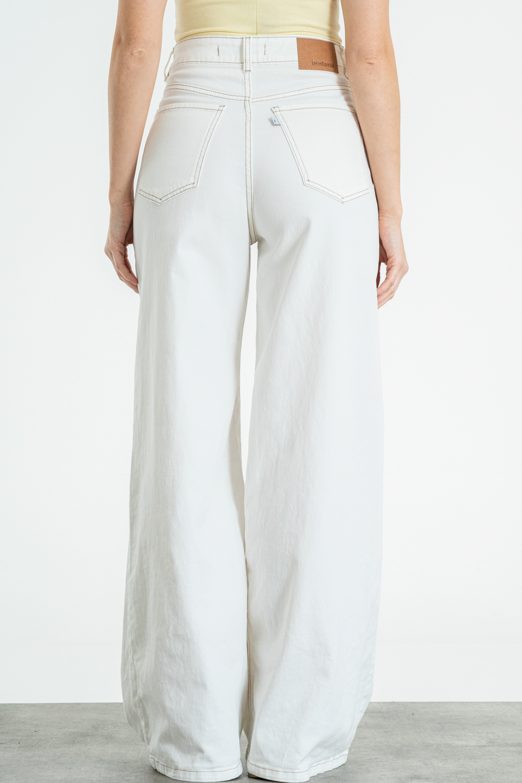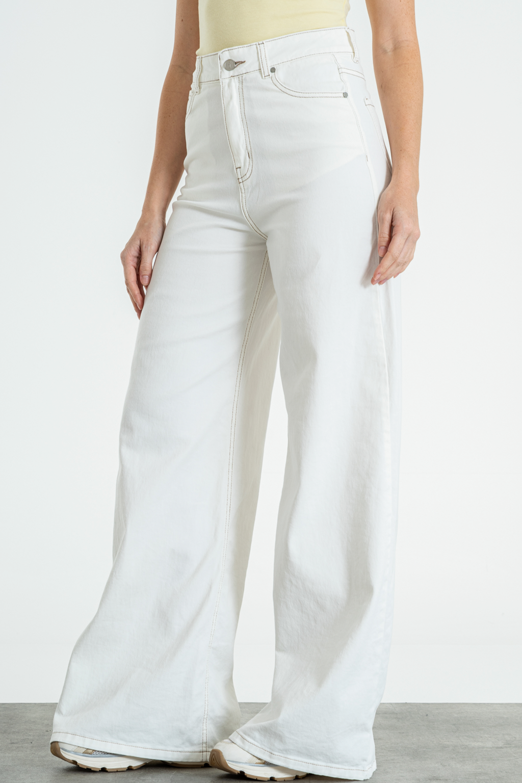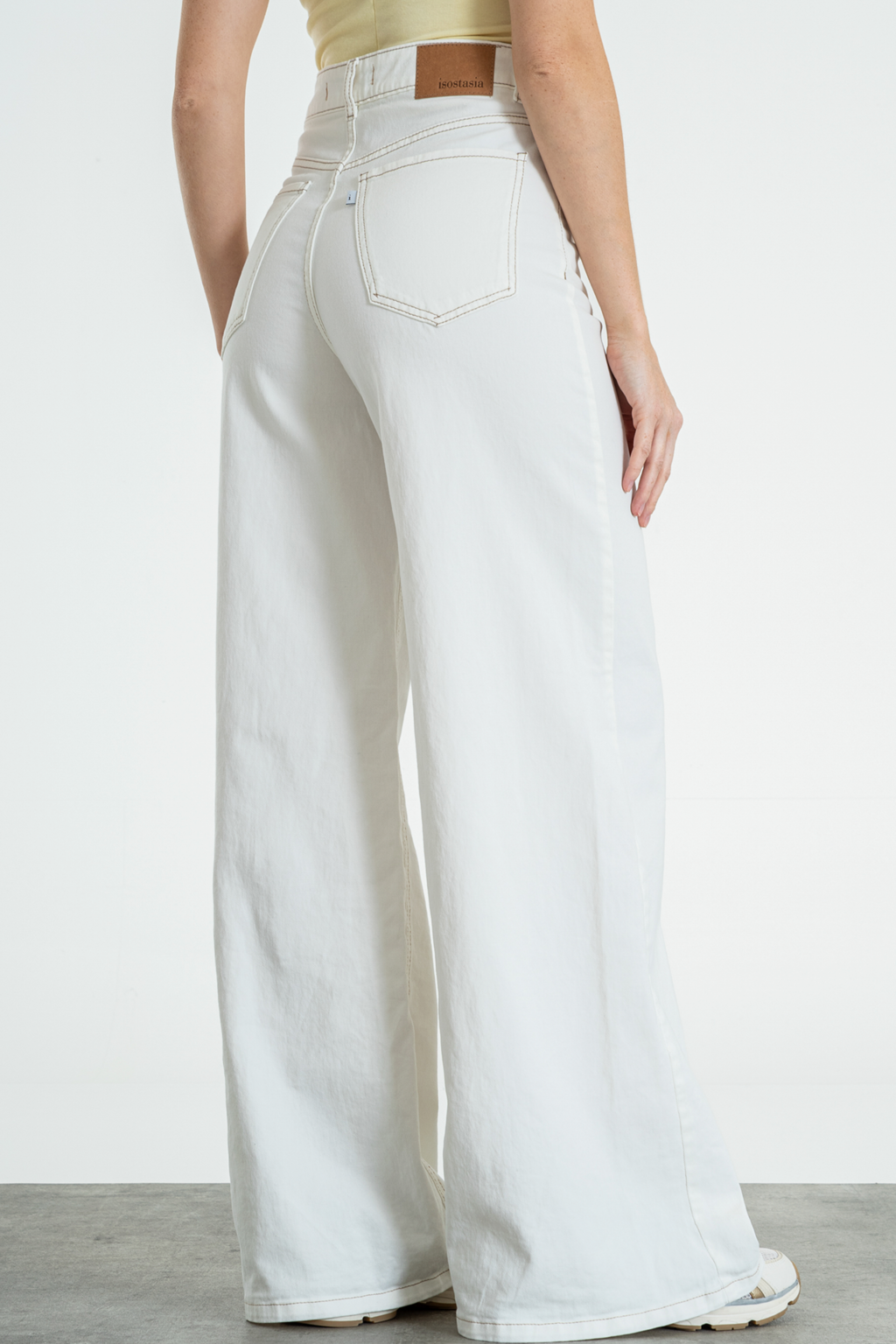 O NELAMY-WIDE LEG ELASTIZADO BLANCO HILO BEIGE TIRO ALTO TALLES 34 AL 42 ISOSTASIA