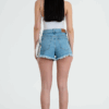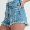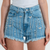 P KIRENE | SHORT AZUL NEVADO RIGIDO CON PIEDRAS Y DESFLECADO TIRO ALTO TALLES DEL 34 AL 44 ISOSTASIA