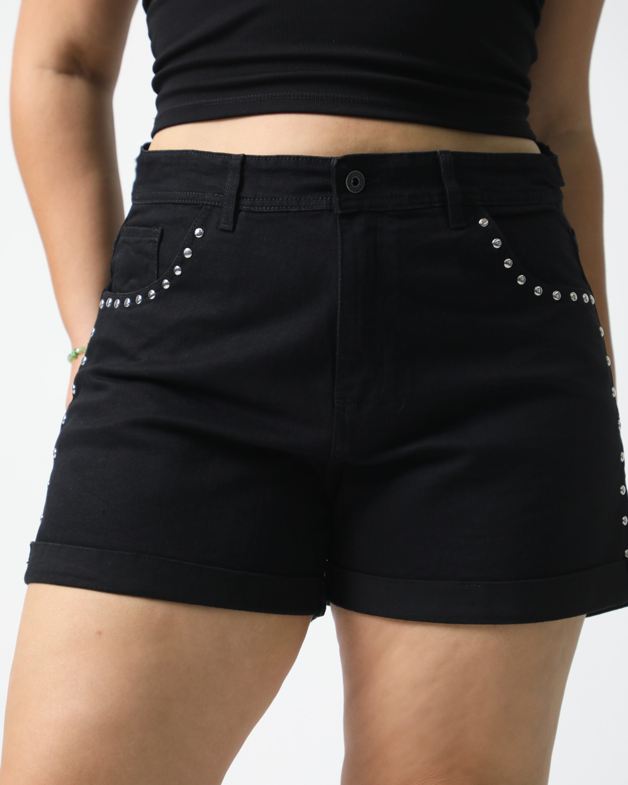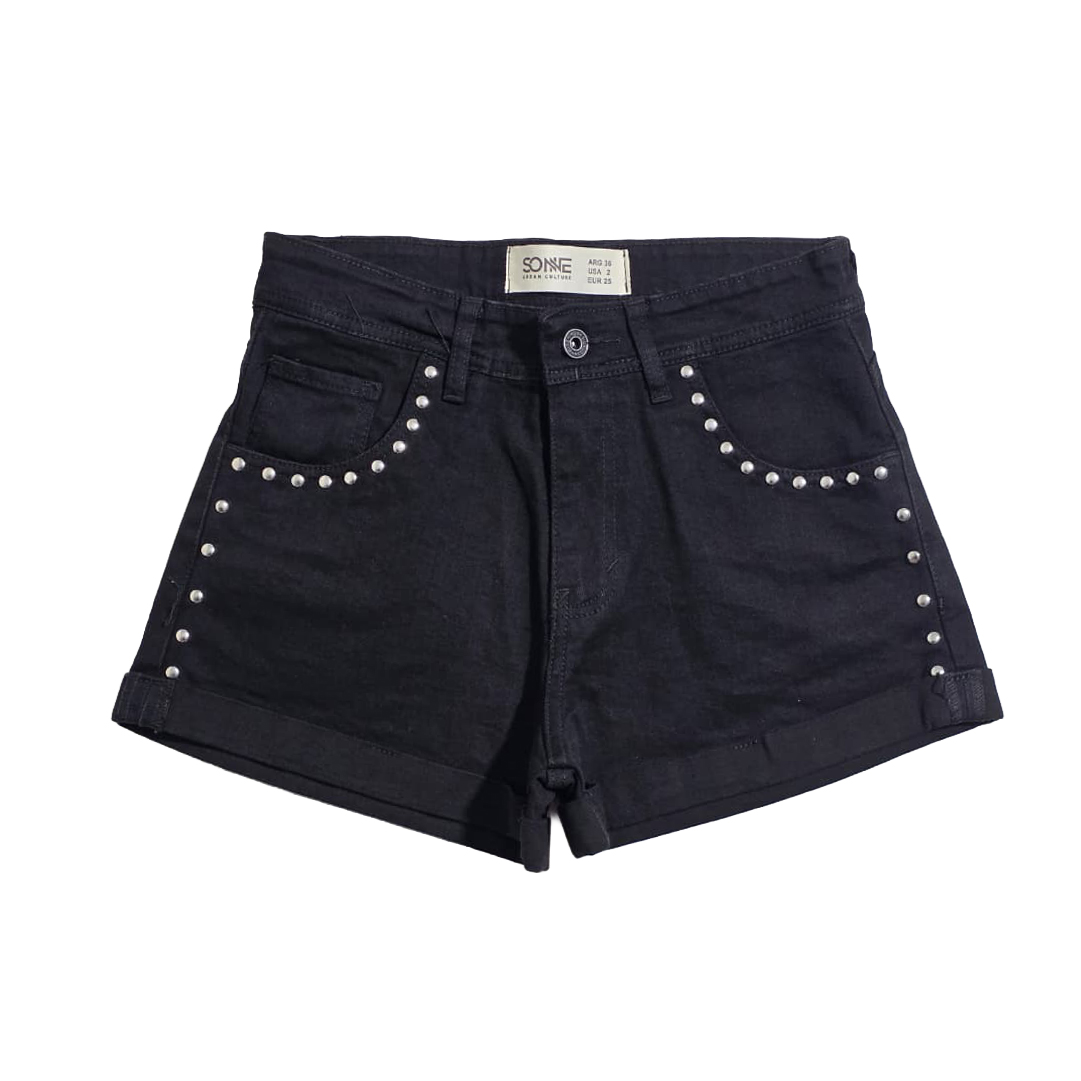 RENA | SHORT NEGRO RIGIDO CON TACHAS TIRO ALTO TALLES DEL 36 AL 60 SONNE