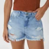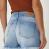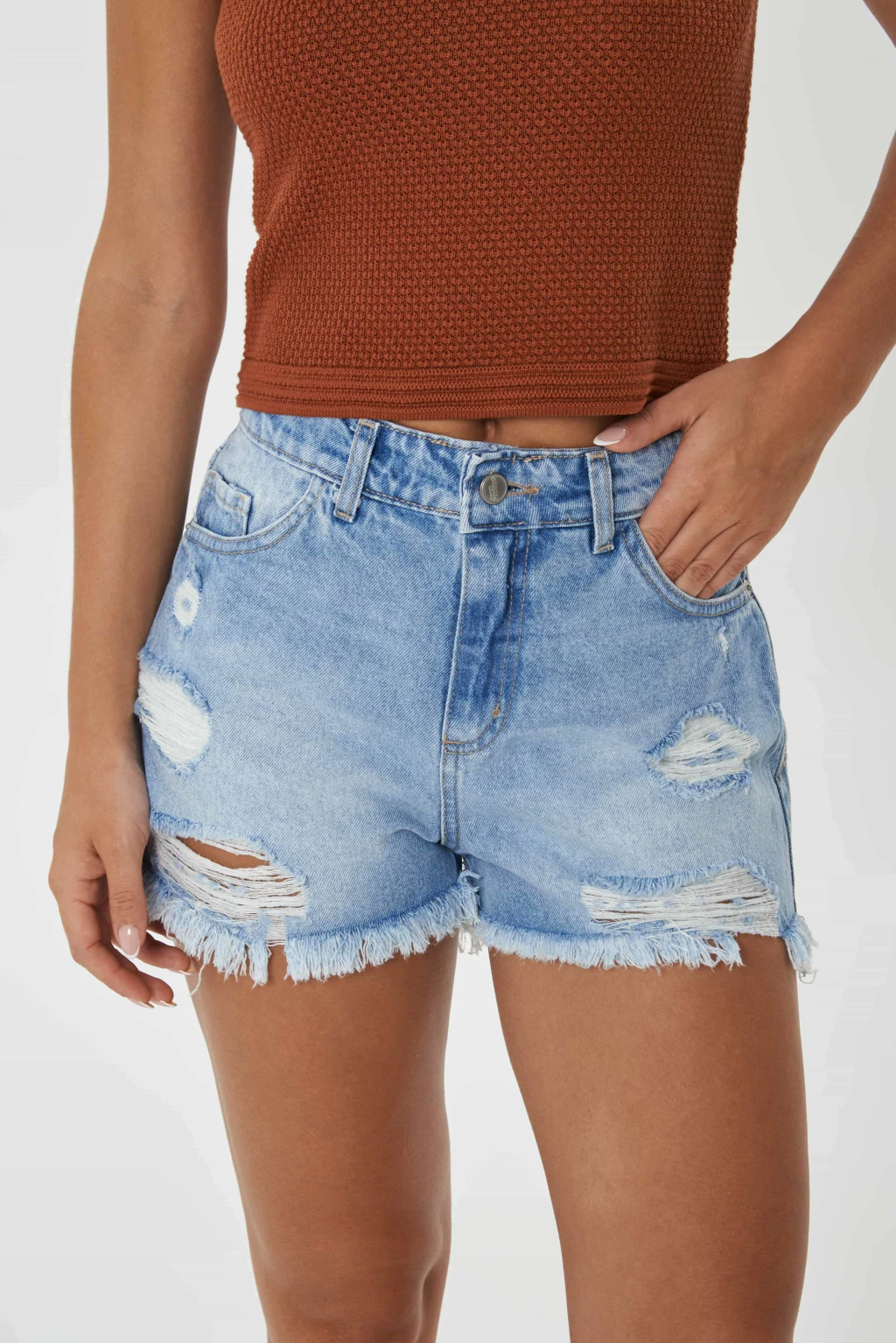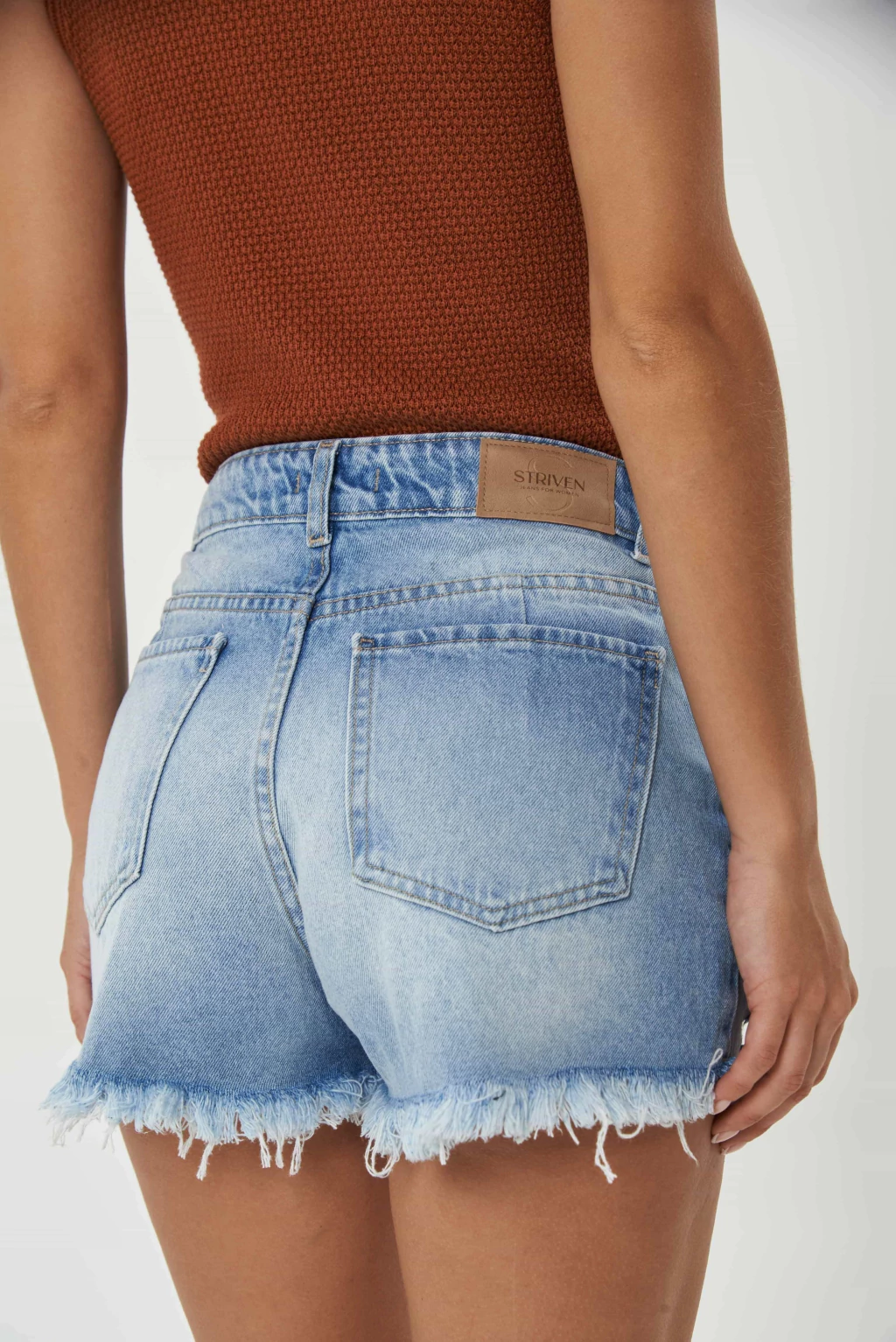 ROCKET-SHORT DE JEAN CELESTE RIGIDO CON ROTURAS RUEDO DESFLECADO TIRO ALTO TALLES 36 AL 46 STRIVEN JEANS