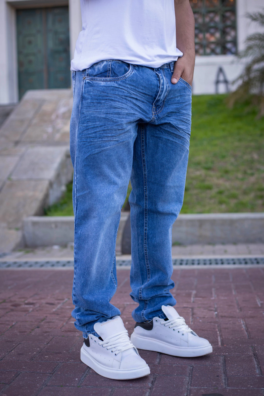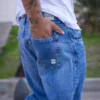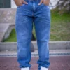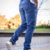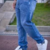 ANDROMEDA JOGGER MOM AZUL CON ROTURAS RIGIDO TALLES 38 AL 48 CRUZO