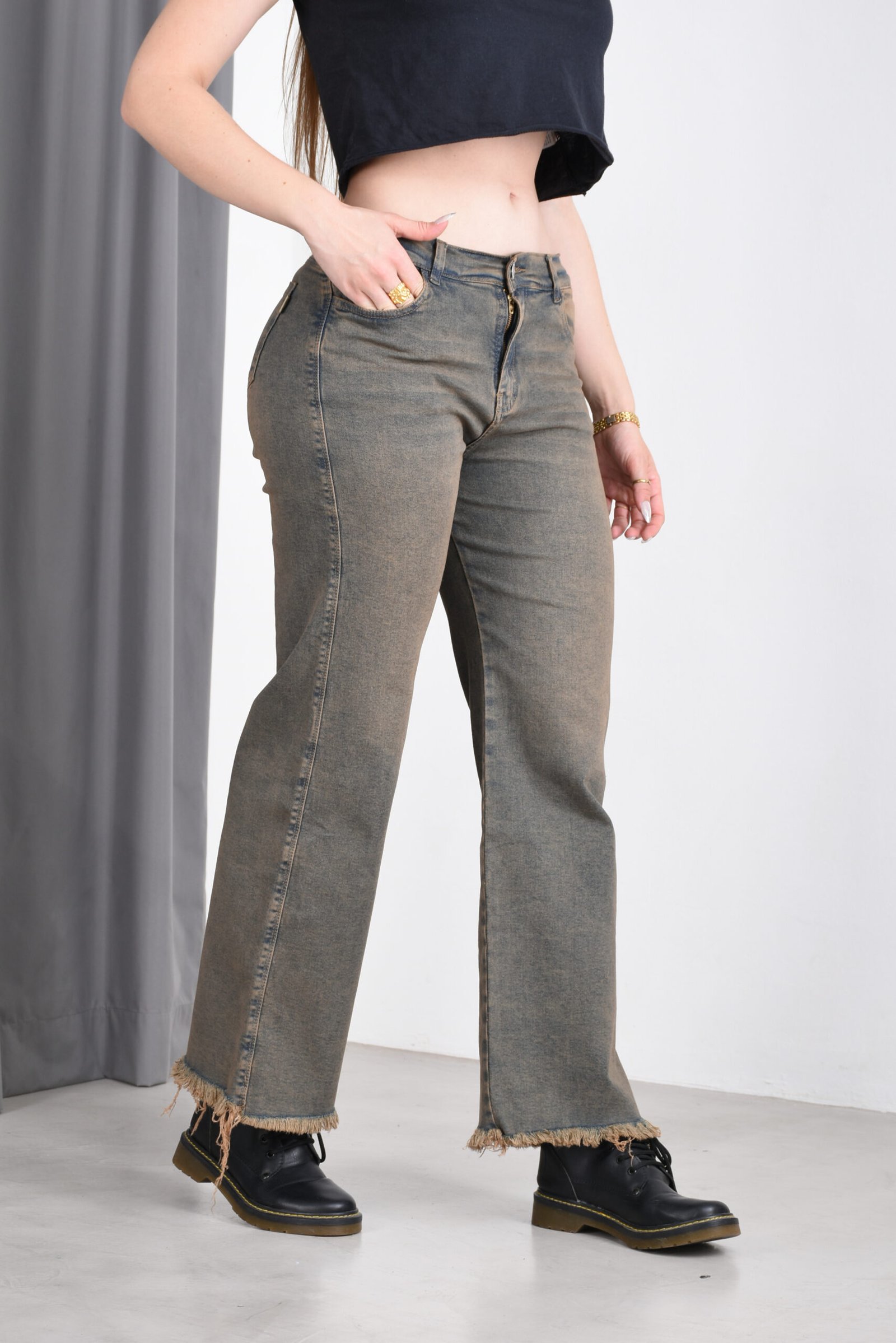SELENE | WIDE LEG OXIDO MATIZADO DESFLECADO TIRO ALTO ELASTIZADO TALLES 38 AL 54 RUMAJU