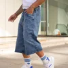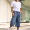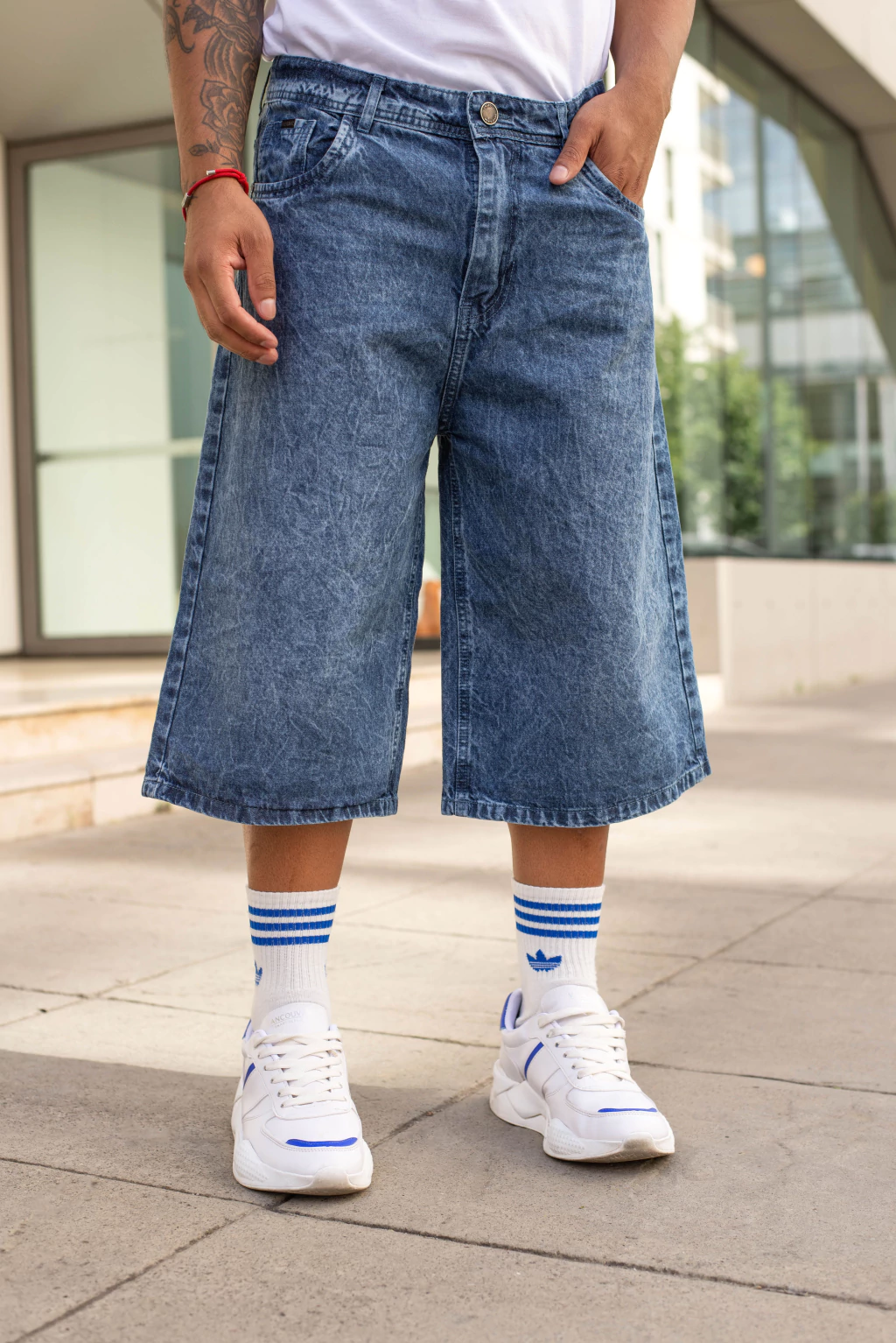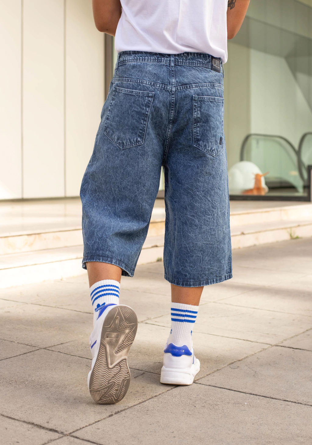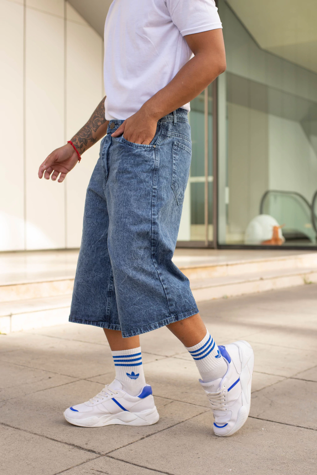 SEUL I BERMUDA BAGGY DE JEAN RIGIDO LAVADO AZUL TALLE 38 AL 48 CRUZO