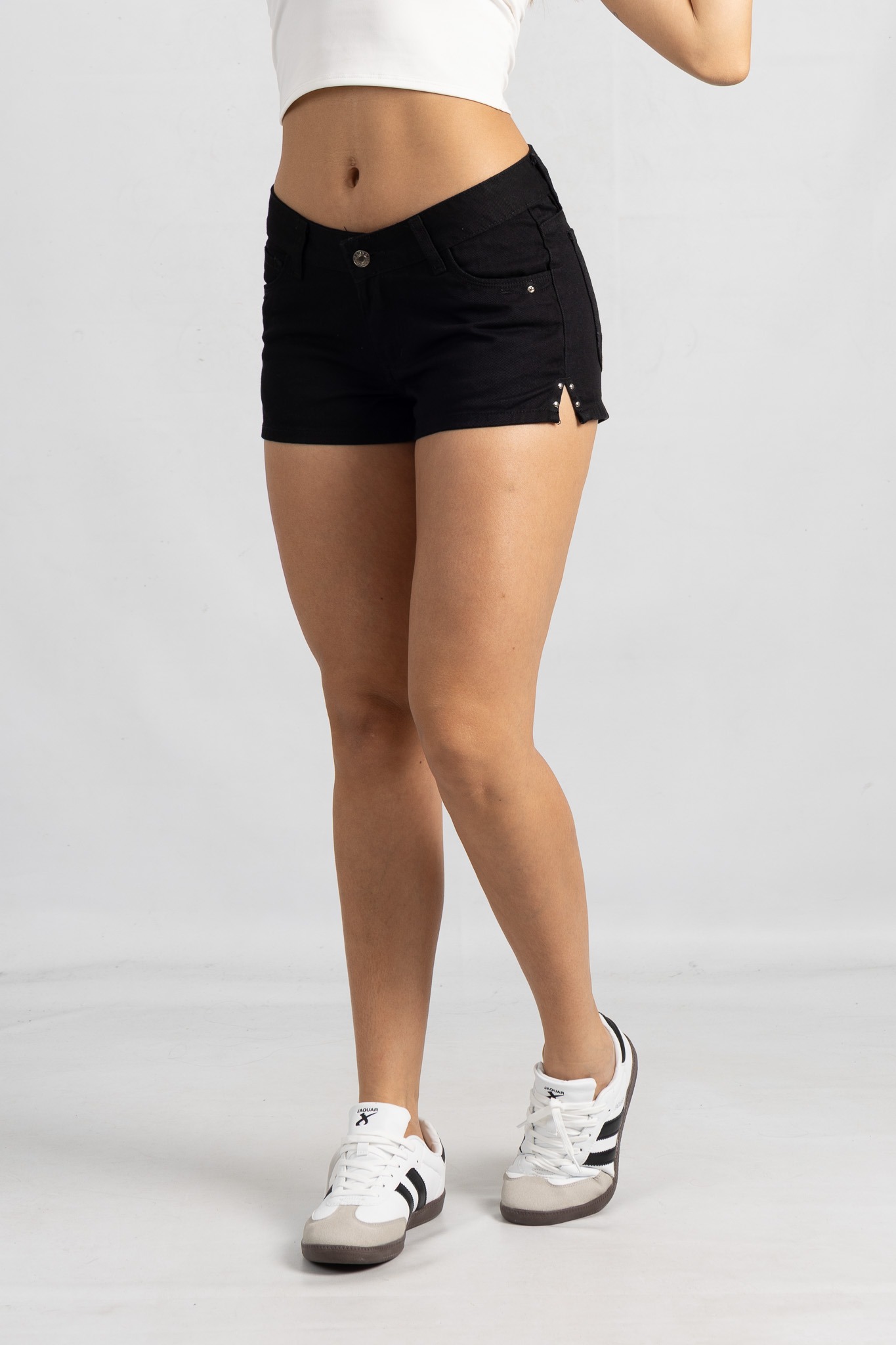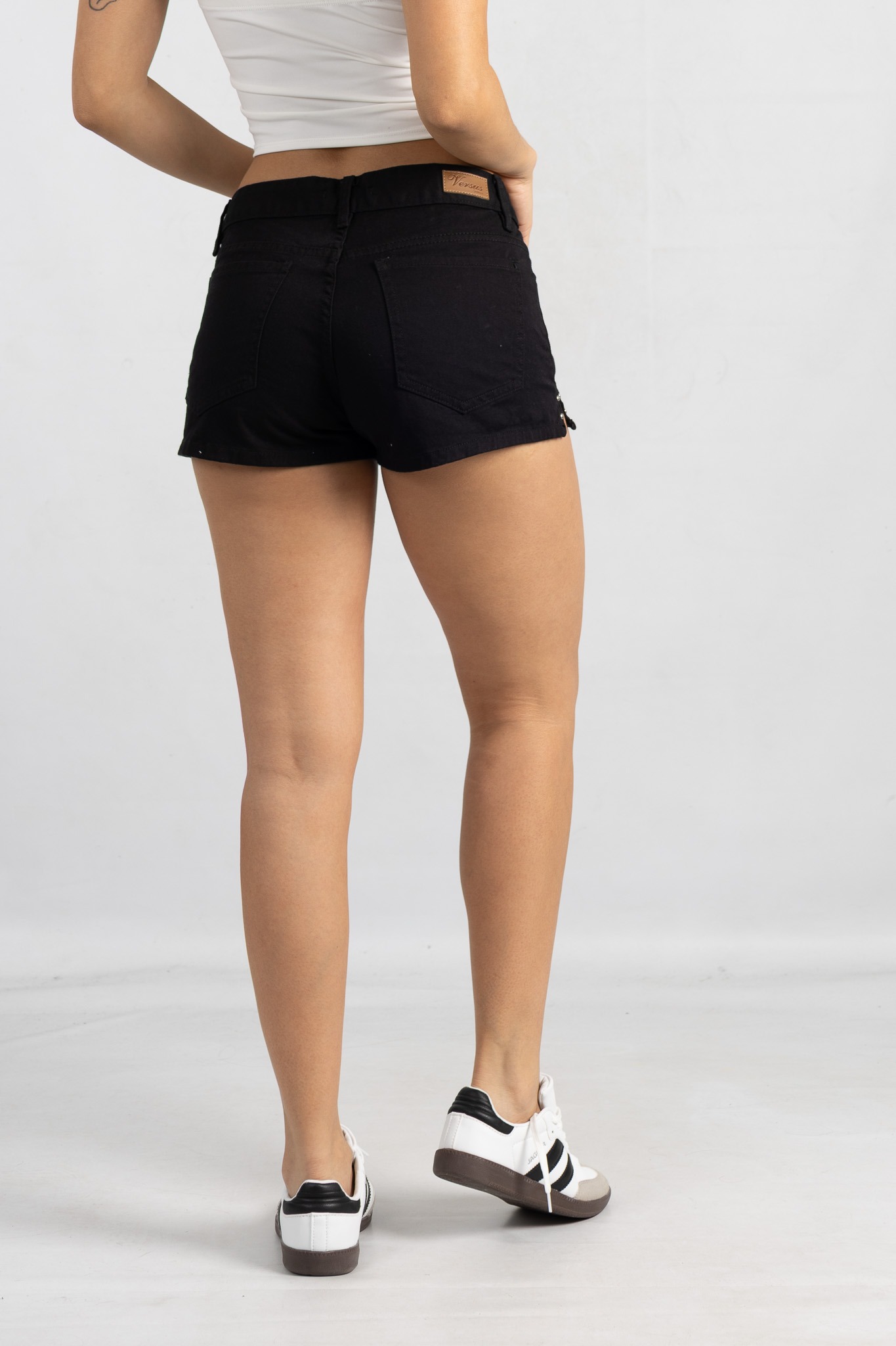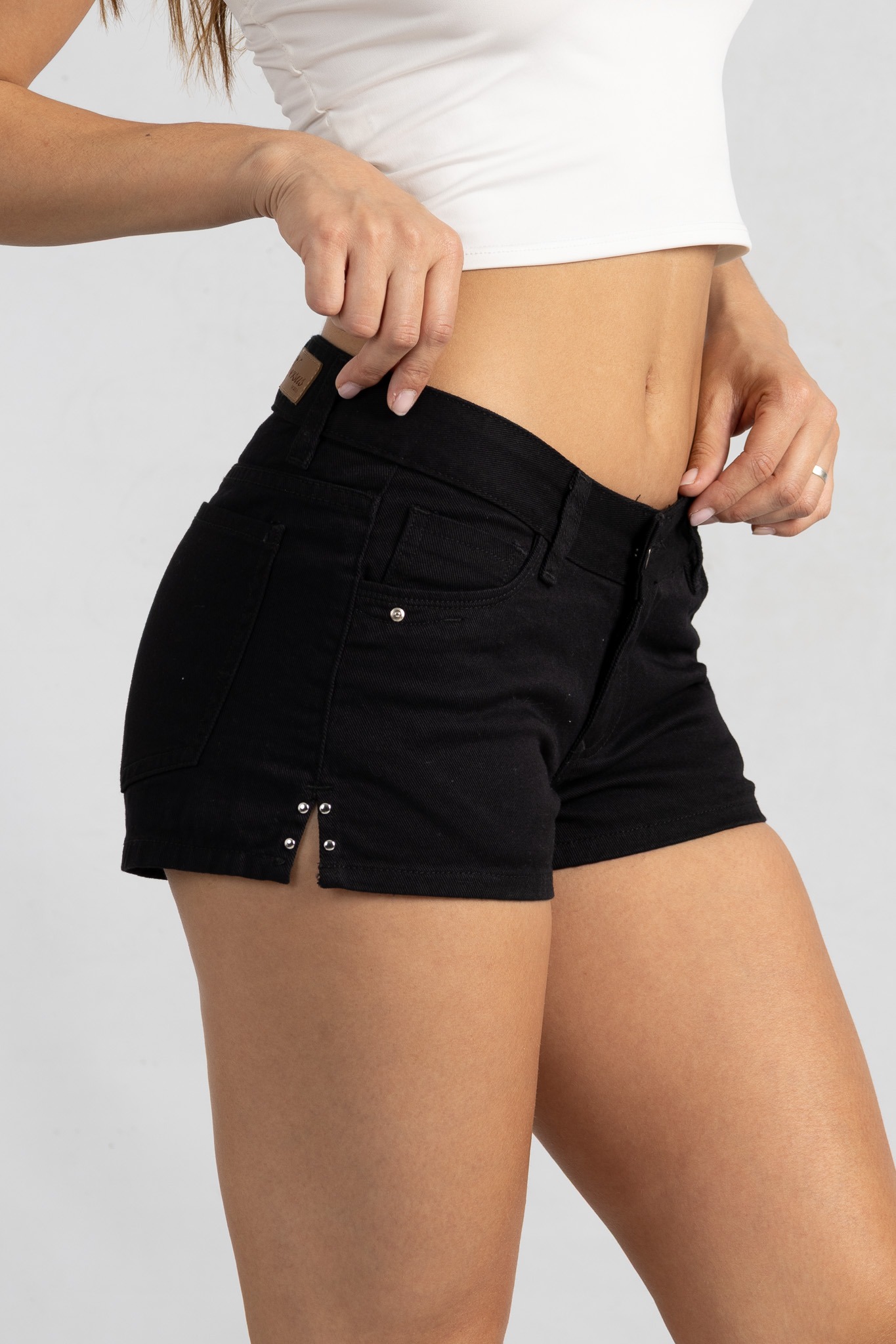 SH-147 | SHORT NEGRO RIGIDO CON ABERTURA LATERAL CON TACHA Y BOLSILLO TIRO BAJO TALLES 36 AL 44 VERSUS JEANS