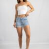 SH-149 | SHORT BEIGE RIGIDO CON ABERTURA LATERAL DESFLECADO TIRO BAJO TALLES 36 AL 44 VERSUS JEANS
