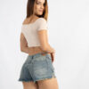 SH-154 | SHORT AZUL OXIDO MATIZADO RIGIDO CON DESFLECADO TIRO BAJO TALLES DEL 36 AL 44 VERSUS
