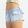 SH-161 | SHORT CELESTE NEVADO RIGIDO CON DESGASTE TIRO BAJO TALLES DEL 36 AL 42 VERSUS