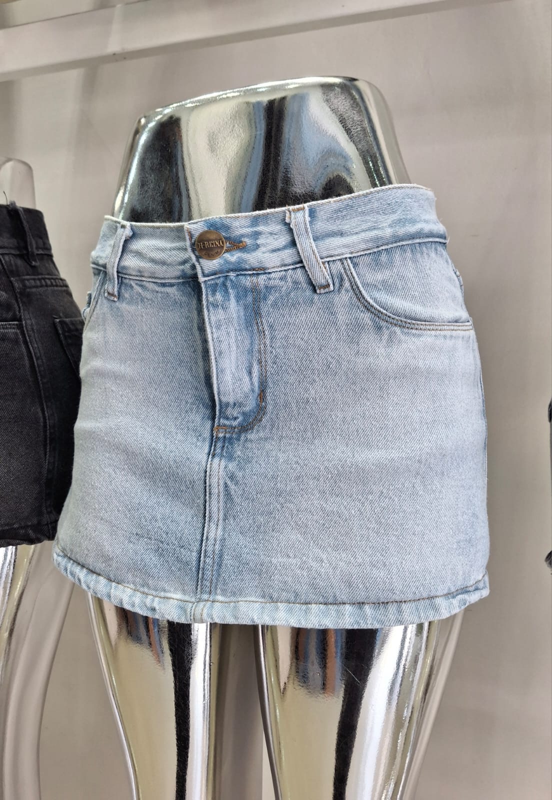 SKY | SKORT RIGIDO CELESTE NEVADO CORTA TIRO BAJO TALLES 34 AL 46 H-REINA