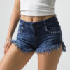 SKYLAR | SHORT DE JEAN AZUL ELASTIZADO CON TACHAS DESFLECADO TIRO ALTO TALLES 36 AL 60 SONNE