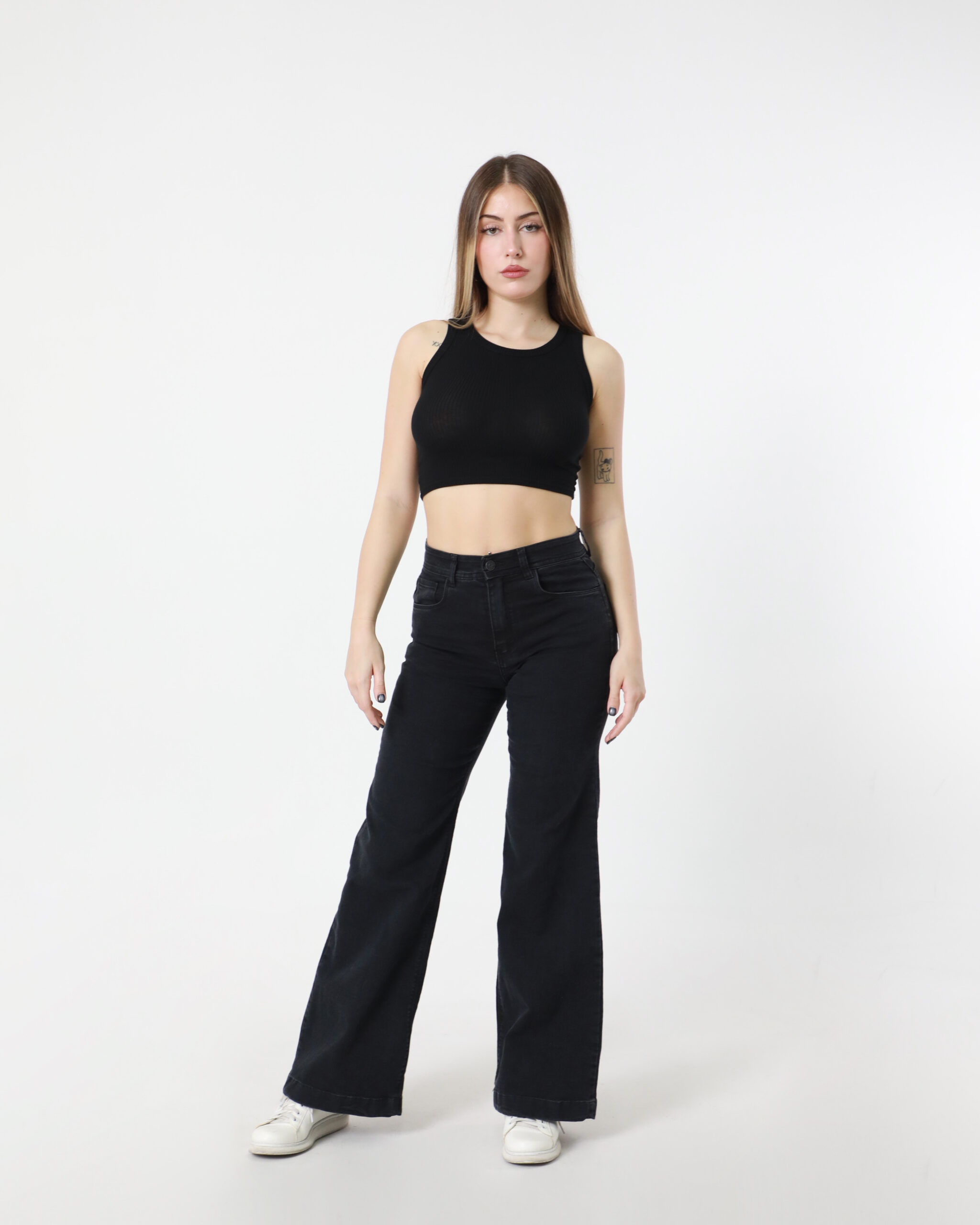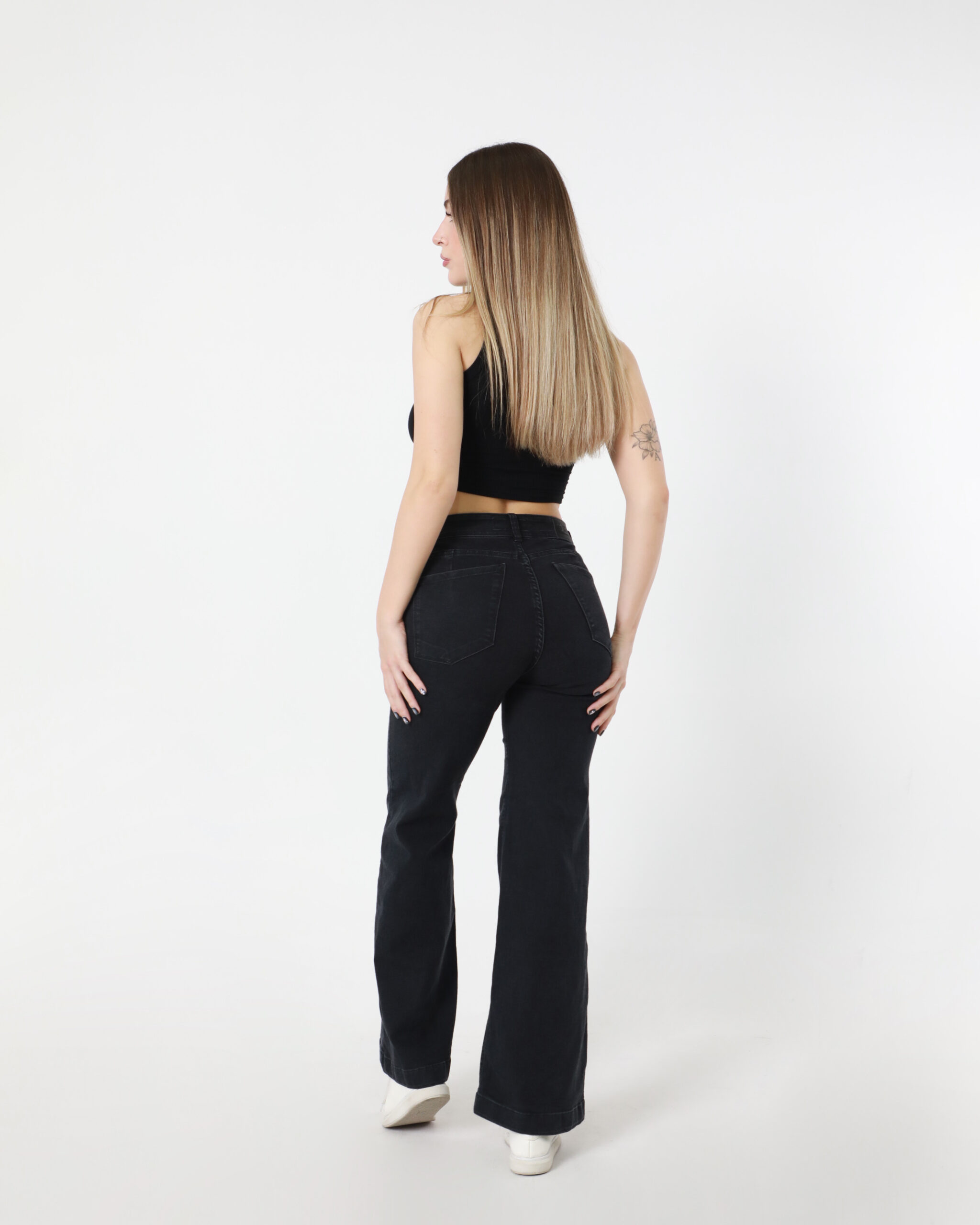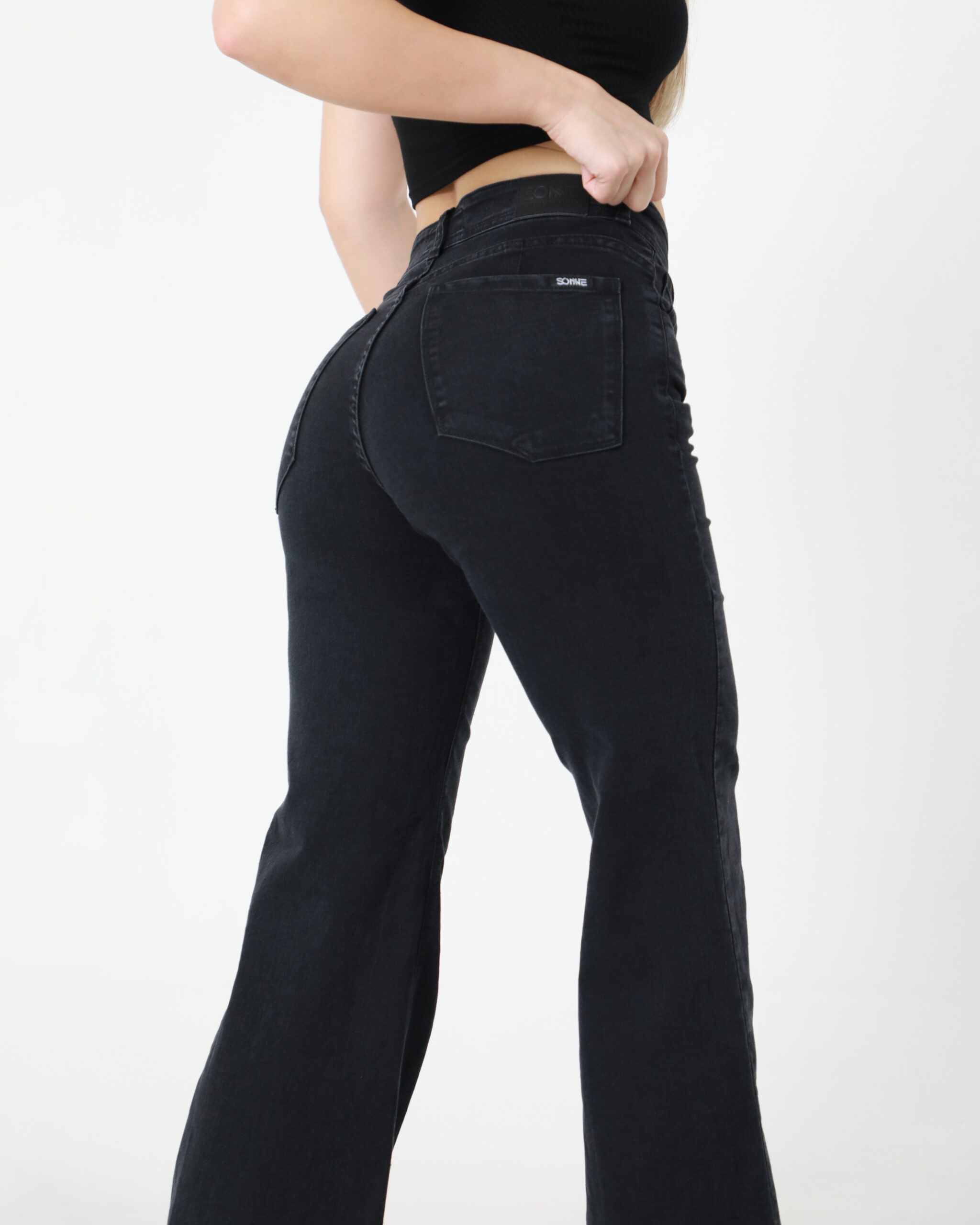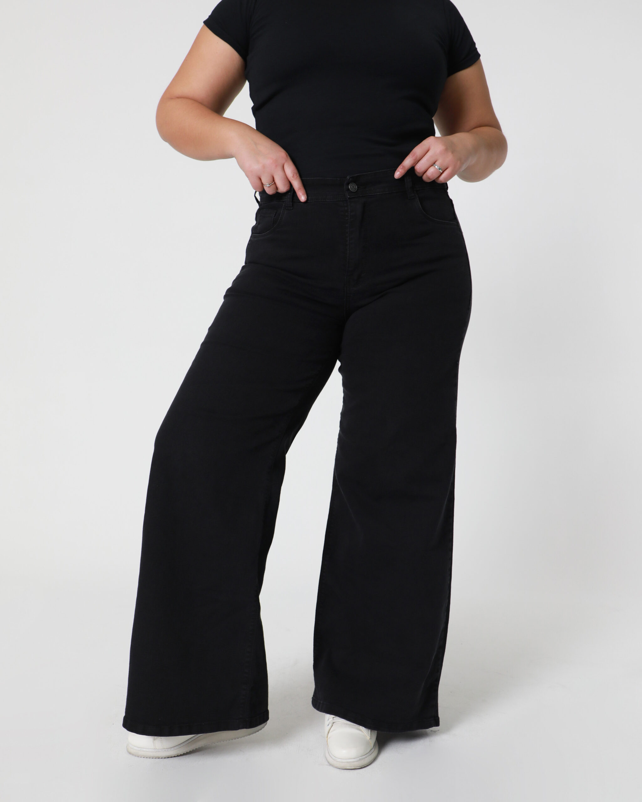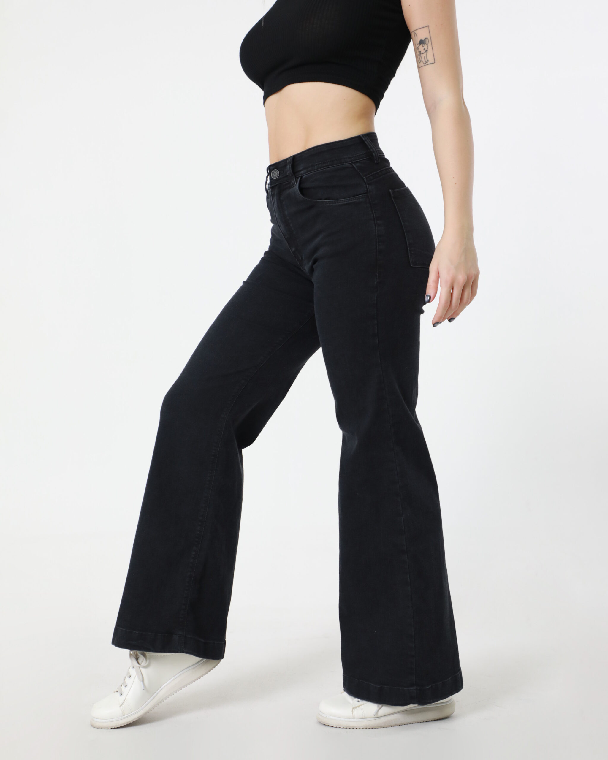 STRAIGHT CHARMED-JEAN WIDE LEG NEGRO STONE TIRO ALTO ELASTIZADO SONNE 36-60