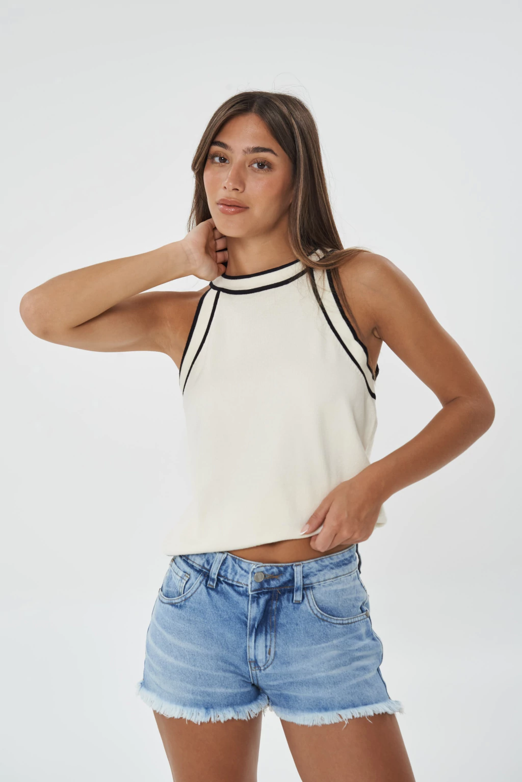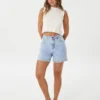 SUKI-SHORT RIGIDO CELESTE DESFLECADO CON BiGOTES TIRO MEDIO TALLES 34 AL 44 STRIVEN