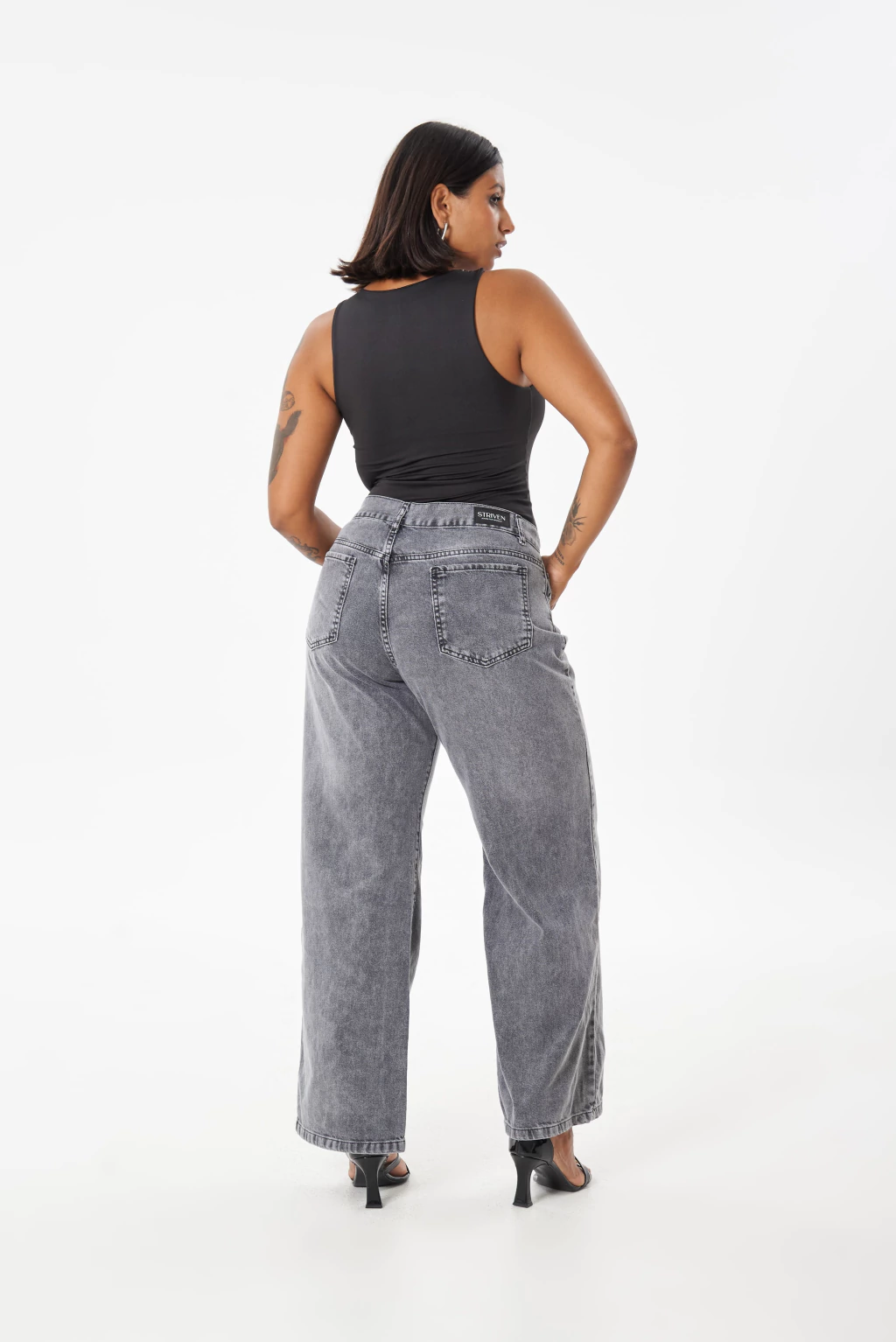 TANAMI – WIDE LEG CURVY GRIS MEDIO RIGIDO TIRO ALTO TALLES 56 AL 60 STRIVEN
