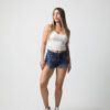 TAYLOR | SHORT DE JEAN AZUL ELASTIZADO DESFLECADO TIRO ALTO TALLES 36 AL 60 SONNE