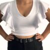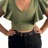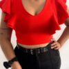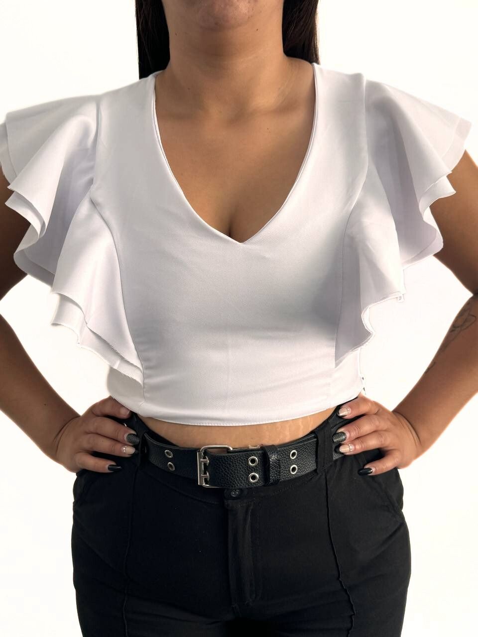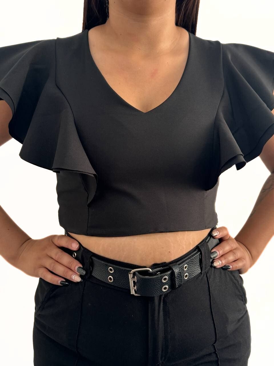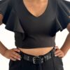 TOP CON BOLADO EN MANGA CON ESCOTE EN V DE TELA BAZZOKA TALLES L AL XXXL