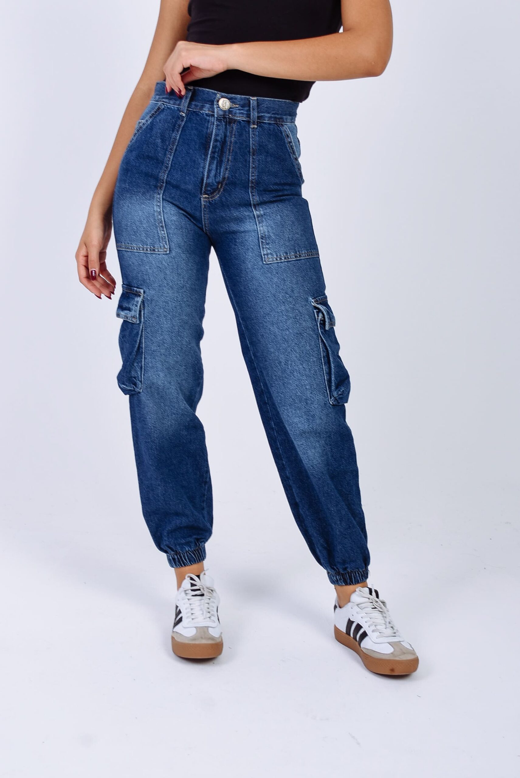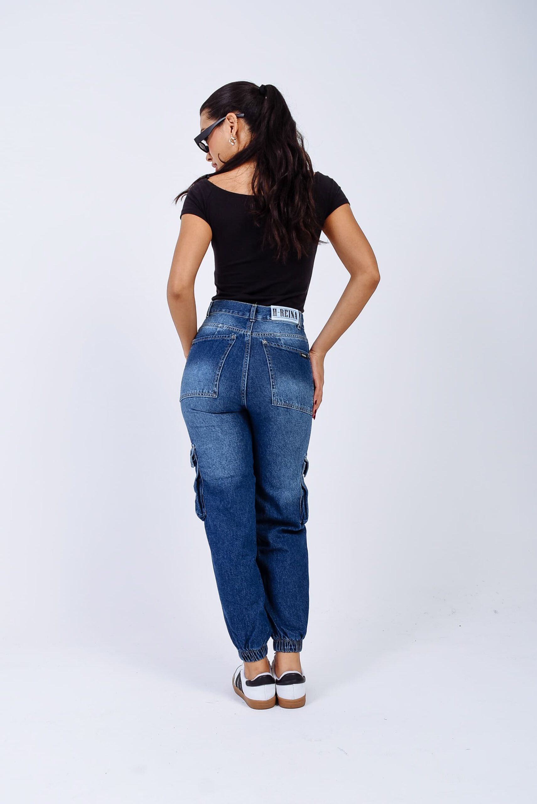 VENECIA-MOM CARGO AZUL RIGIDO TIRO ALTO TALLES 34 AL 46 H-REINA