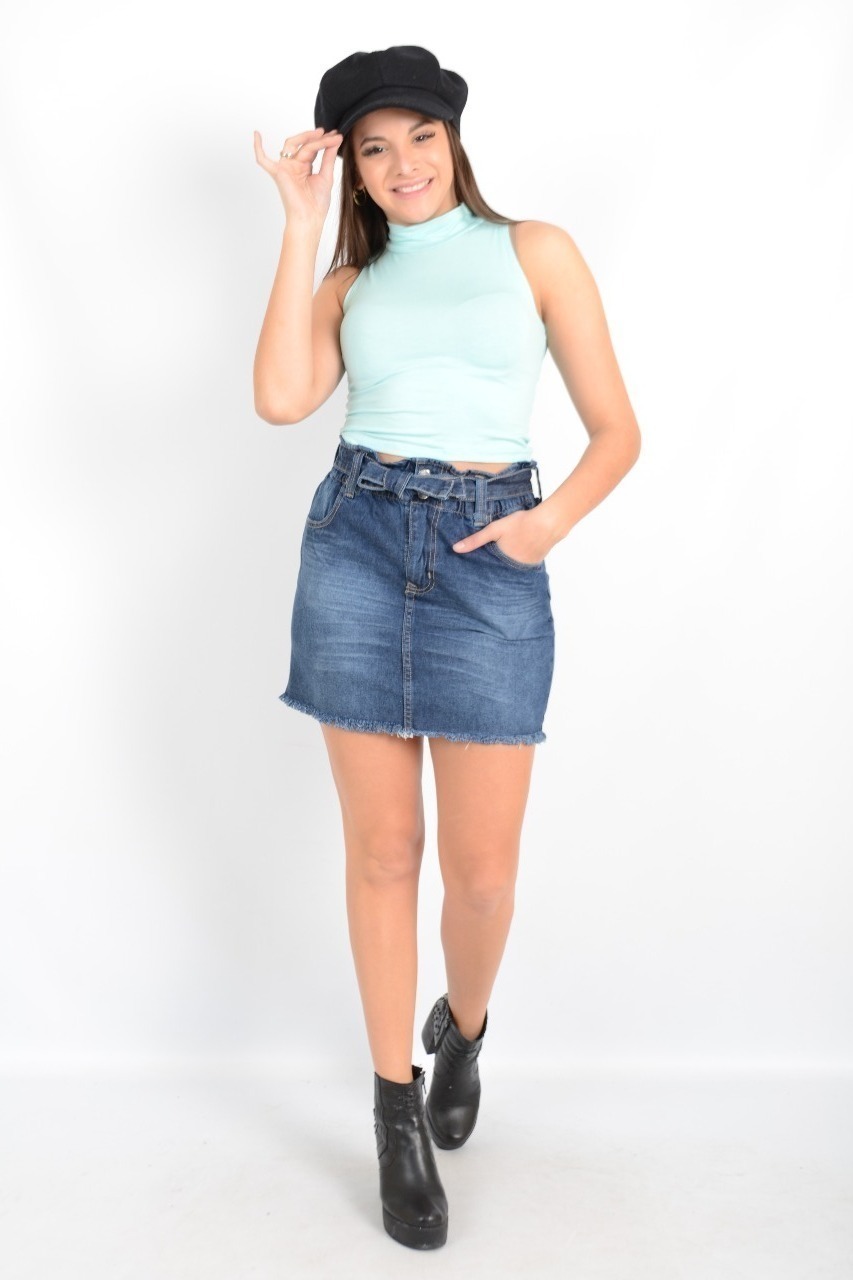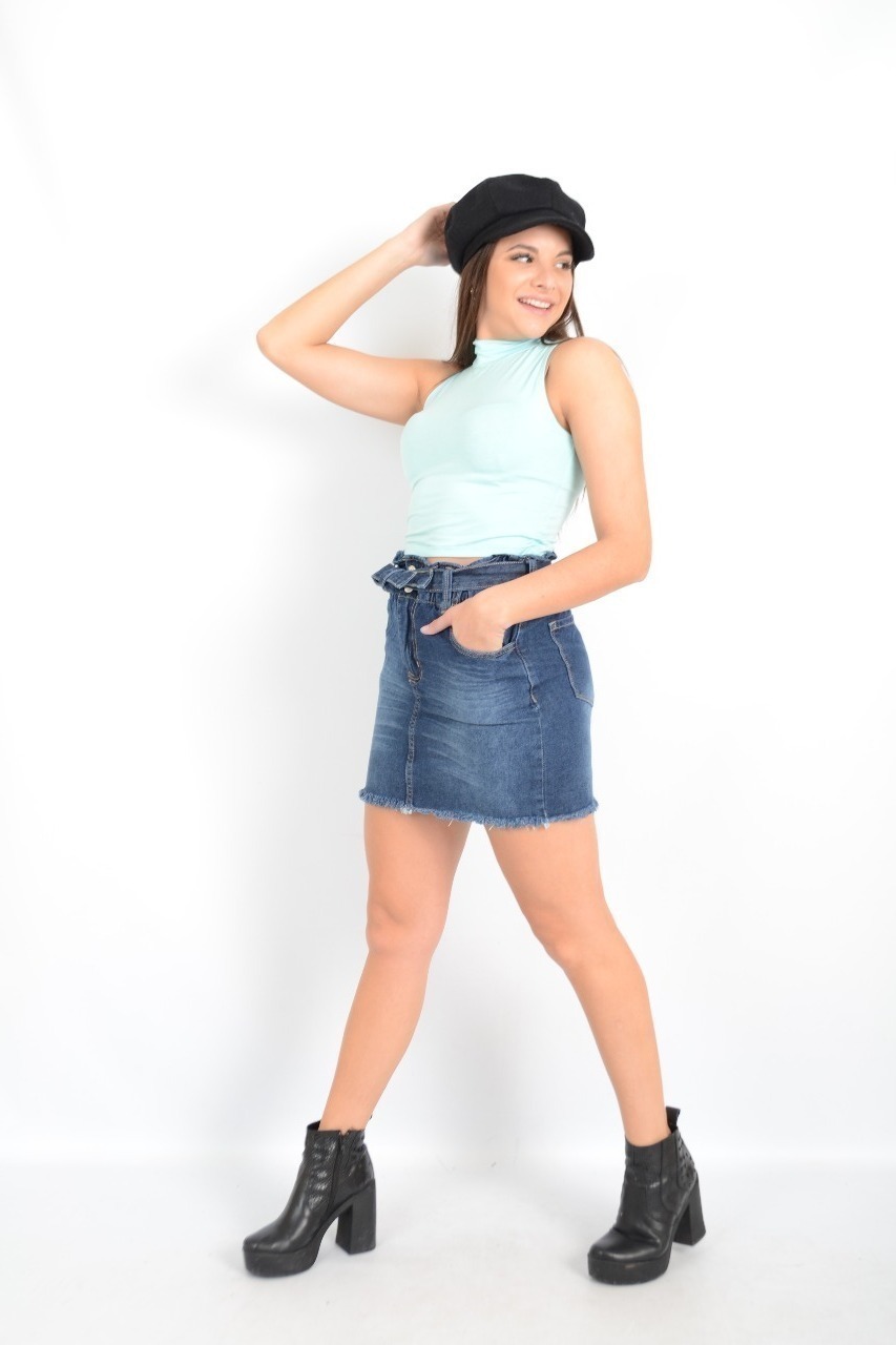 0357 | MINI FALDA CELESTE RIGIDO BOLSILLOS FRONTALES TIRO ALTO TALLES DEL 36 AL 44 INQUIETA