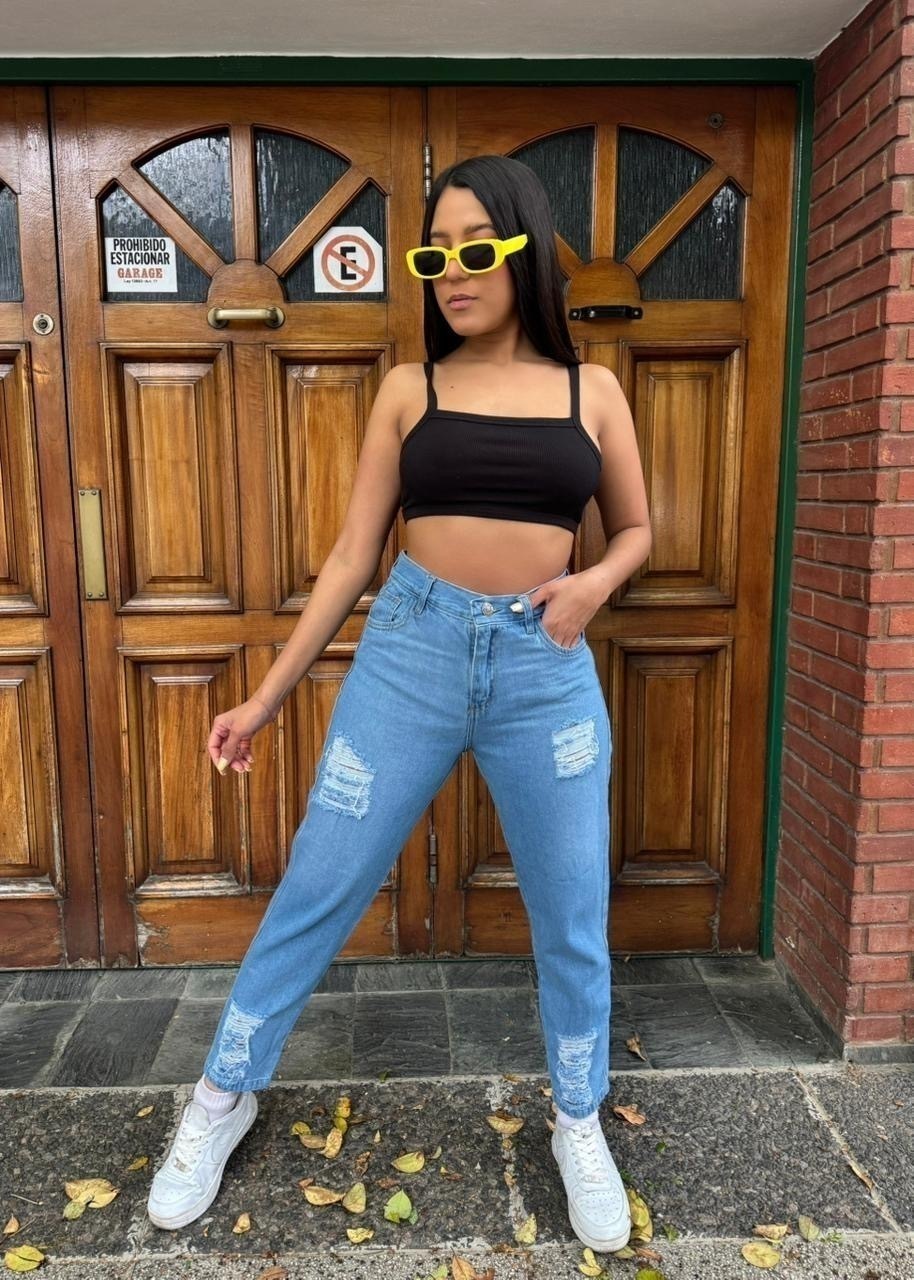 ART. 525 | MOM AZUL CLASICO CON ROTURAS TIRO ALTO TALLES 36 AL 42 VERSUS