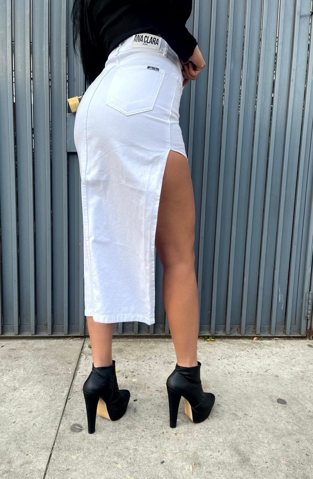 POLLERA BLANCA LARGA RIGIDO CON ABERTURA TALLES 36 AL 46 ANA CLARA
