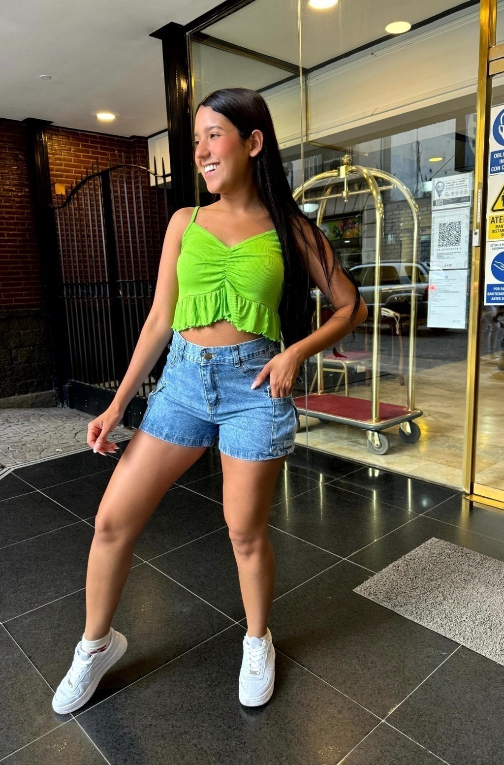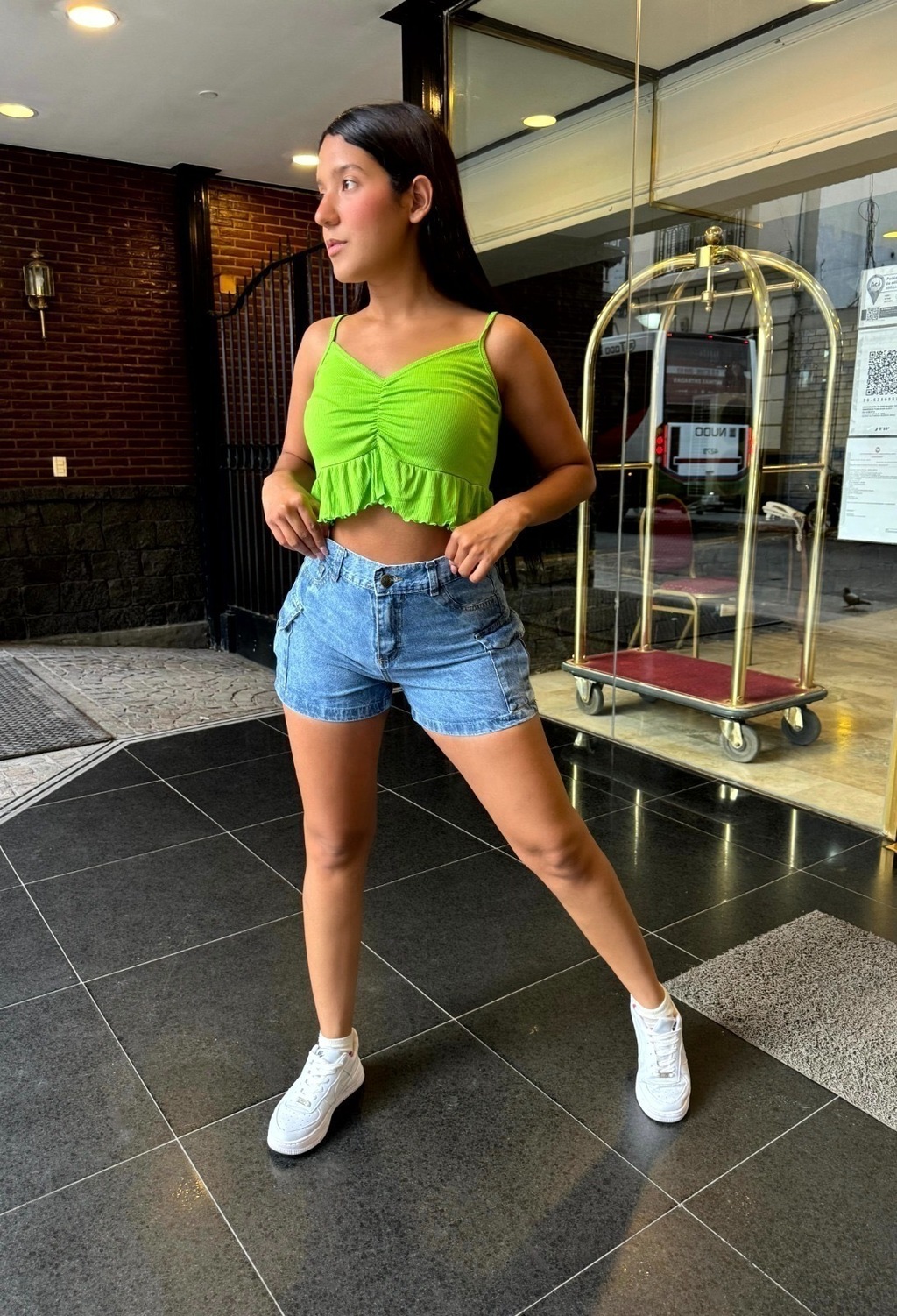 Sh-106 | SHORT CELESTE CARGO POCKET CON TAPA RIGIDO TIRO MEDIO TALLES DEL 36 AL 46 ANDAR