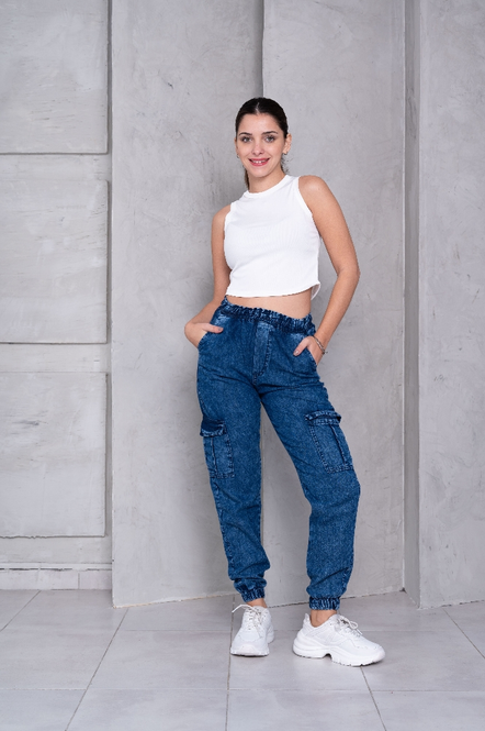 Art. 234-2 I JOGGER CARGO AZUL ARENADO TIRO ALTO TALLES 36 AL 46 PRINCIPESSA
